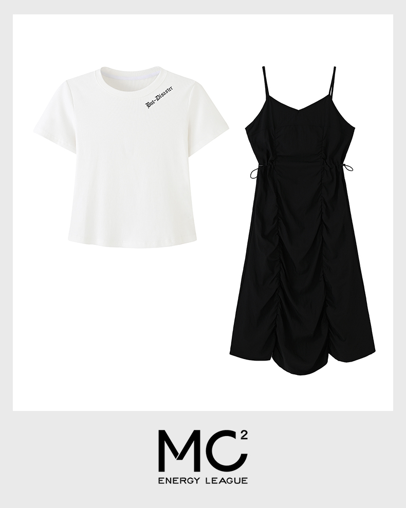 MC2时尚卫衣套装裙女2023新款翻领短款上衣配织带半裙气质两件套