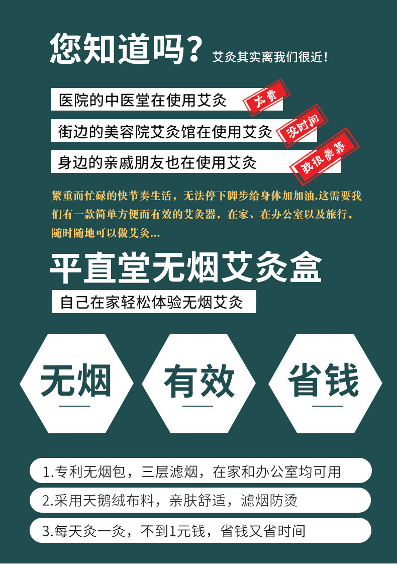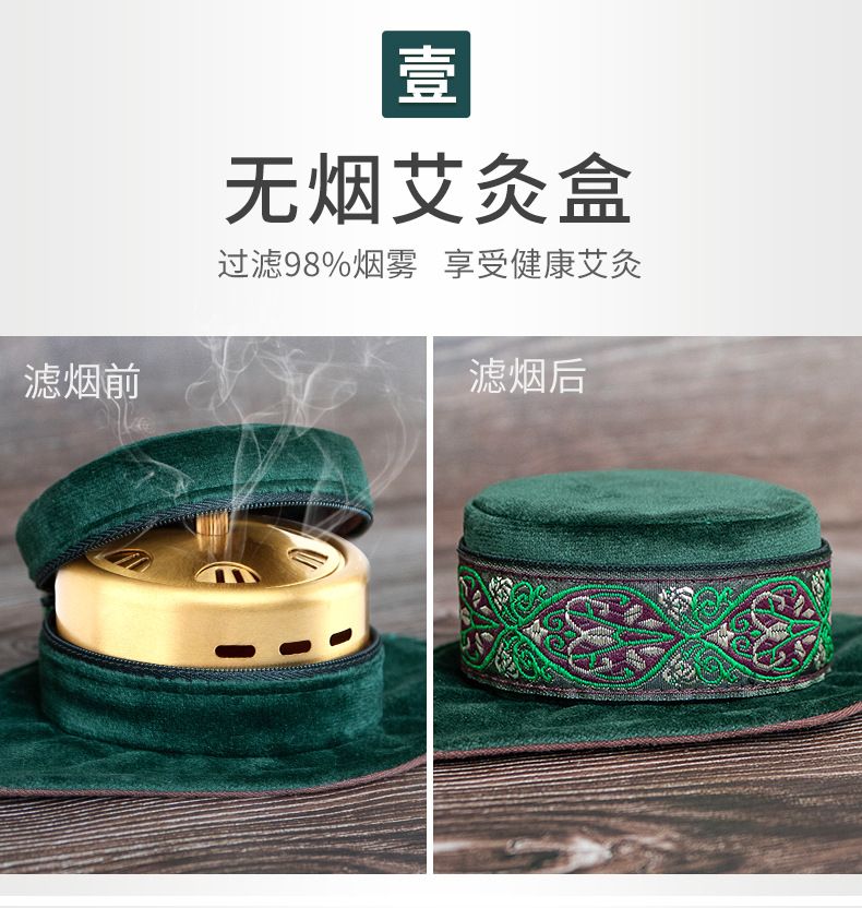 平直堂艾灸盒子艾灸器 随身艾灸 ,随身灸家庭艾灸 家庭套装 【赠平顶铜镂空艾灸盒】