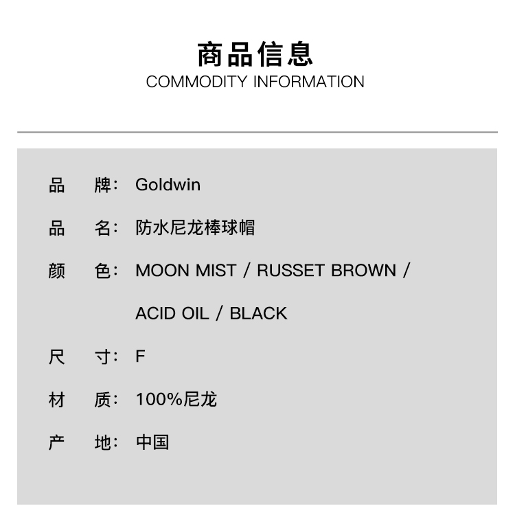 Goldwin Nylon BB Cap 防水尼龙棒球帽 纯色鸭舌帽