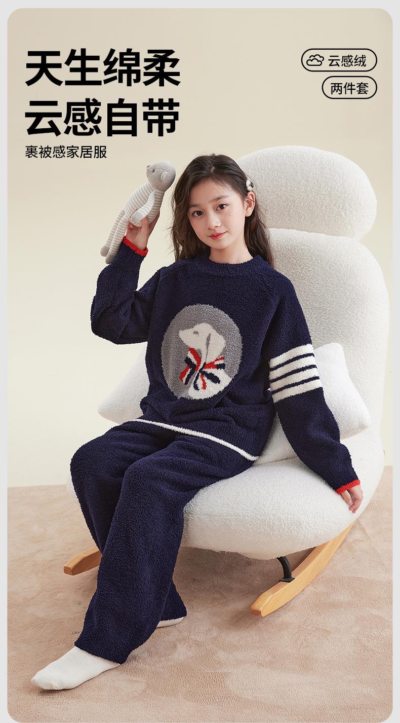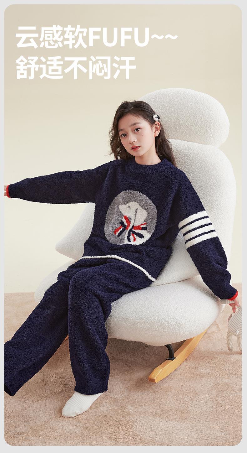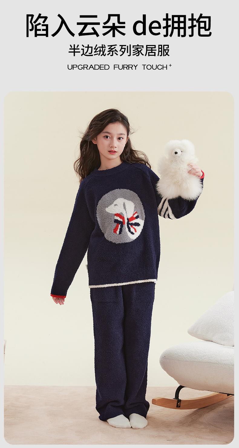女童睡衣冬季2025新款儿童半边绒家居服套装小女孩秋冬保暖两件套