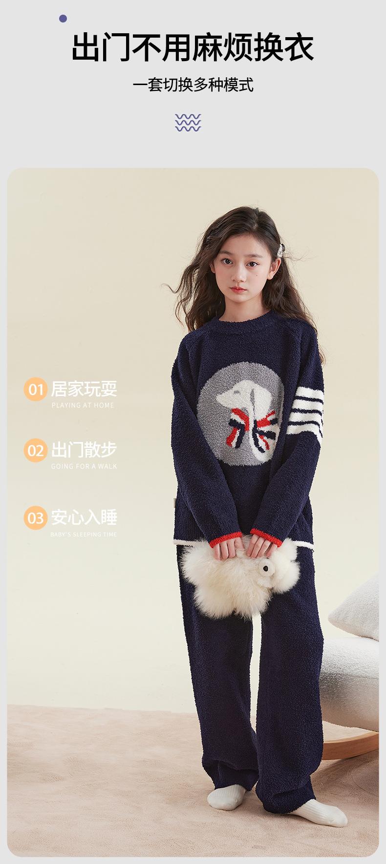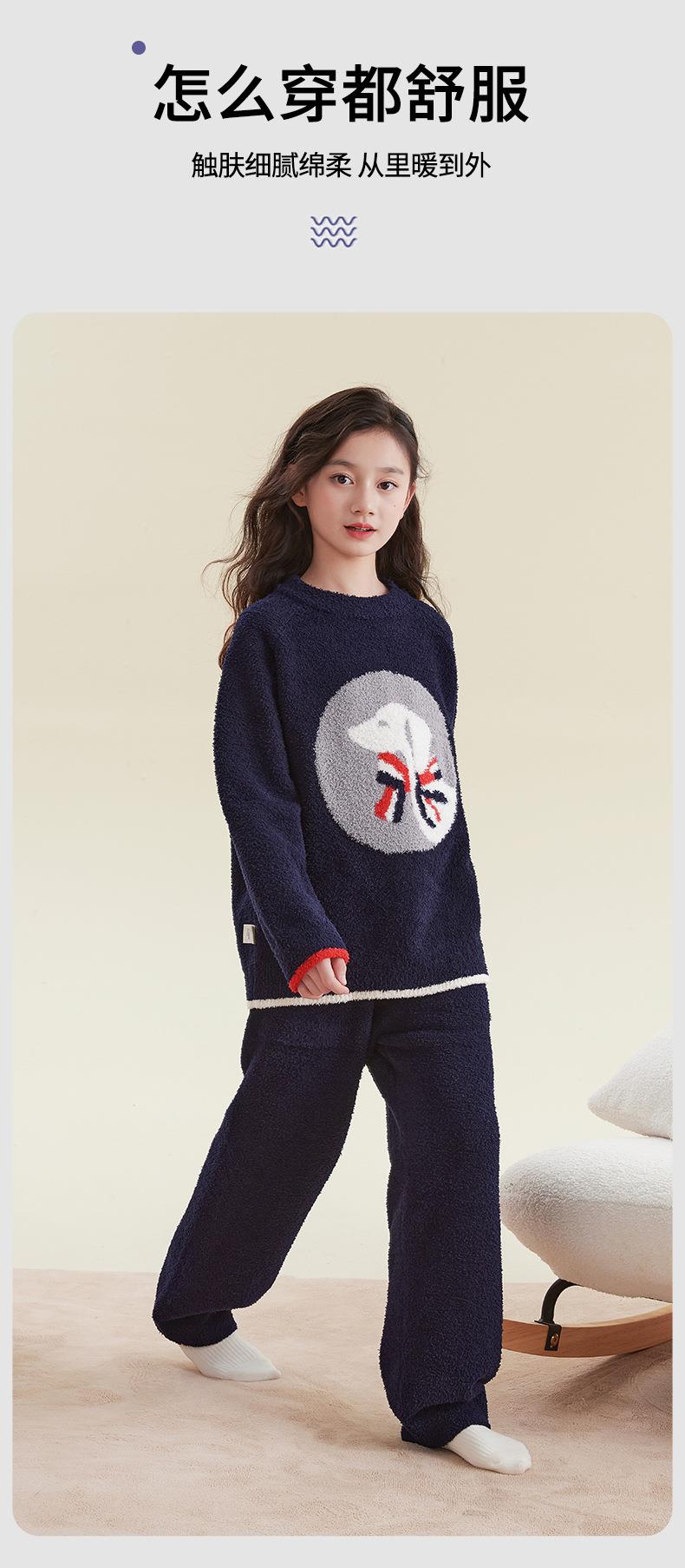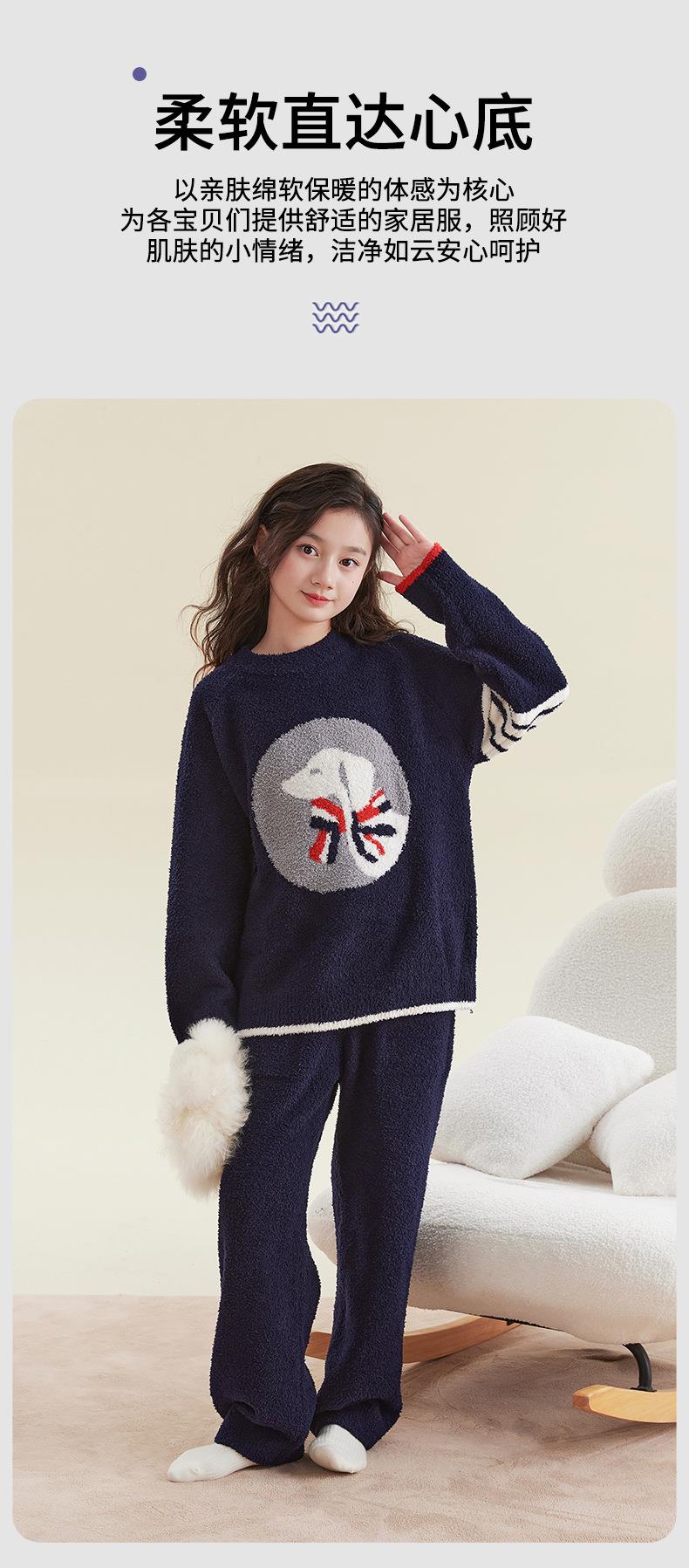 女童睡衣冬季2025新款儿童半边绒家居服套装小女孩秋冬保暖两件套