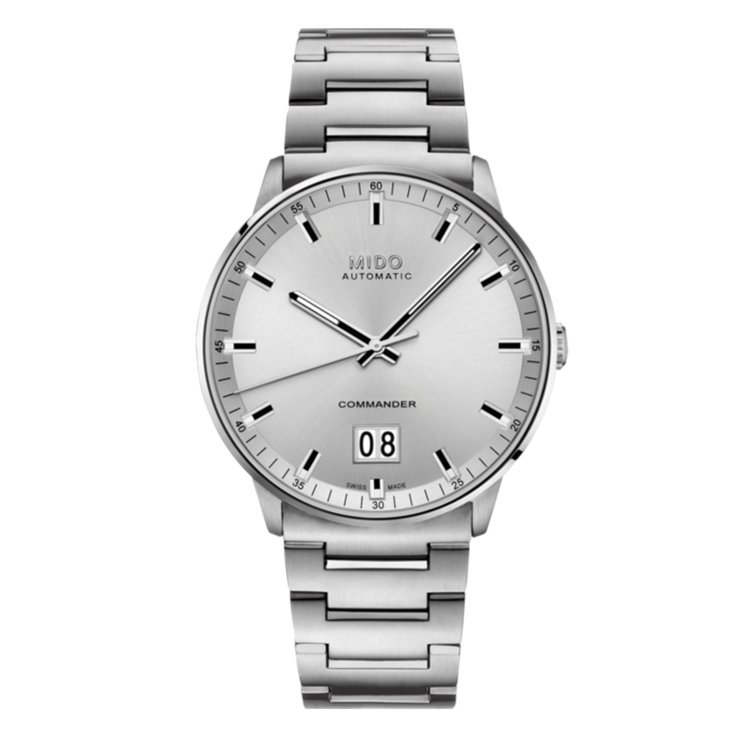 镜面 材质 | 蓝宝石水晶玻璃 | 表盘 | 精钢表壳 银灰色表盘 镶贴时标 大三针 大型日期视窗 透底 |