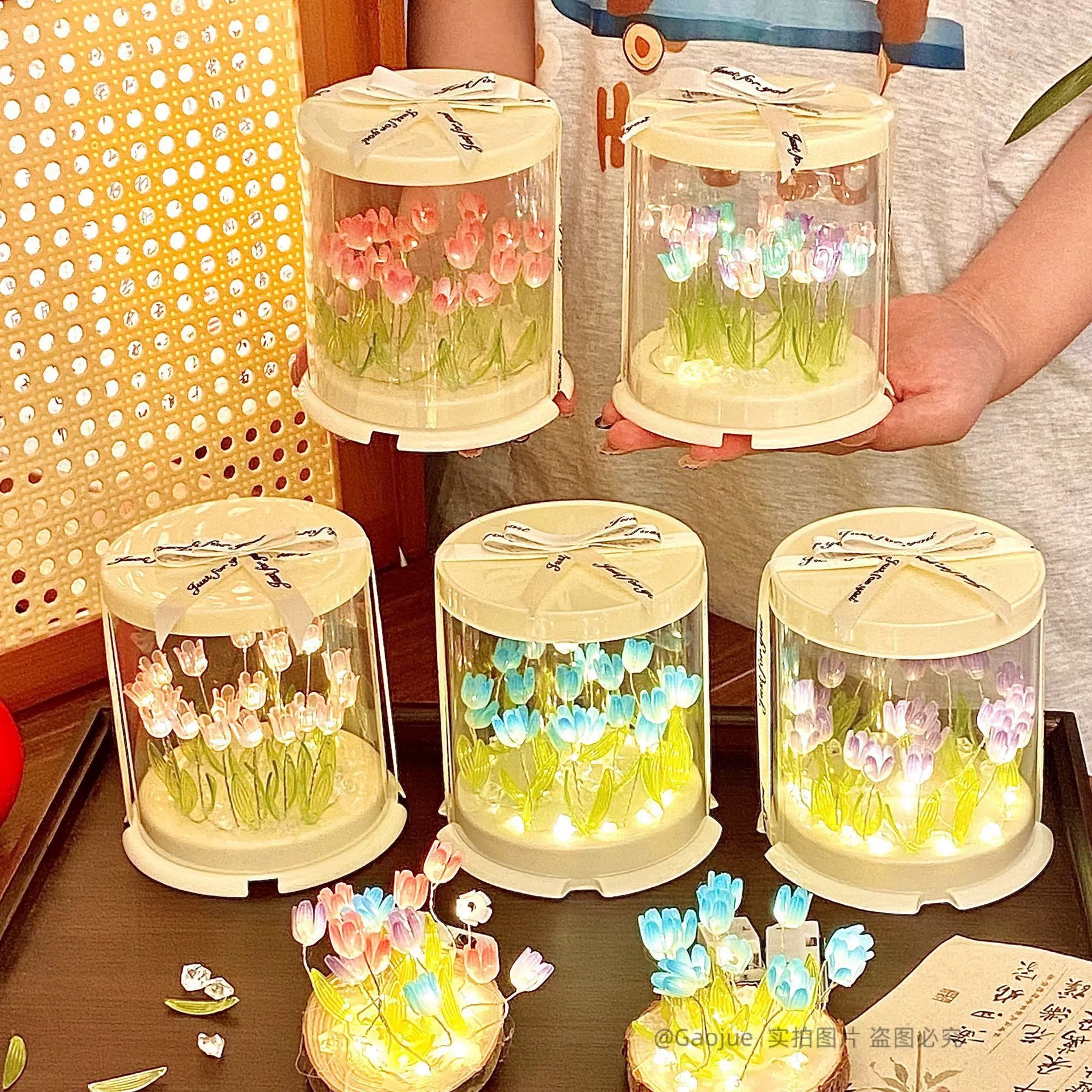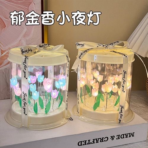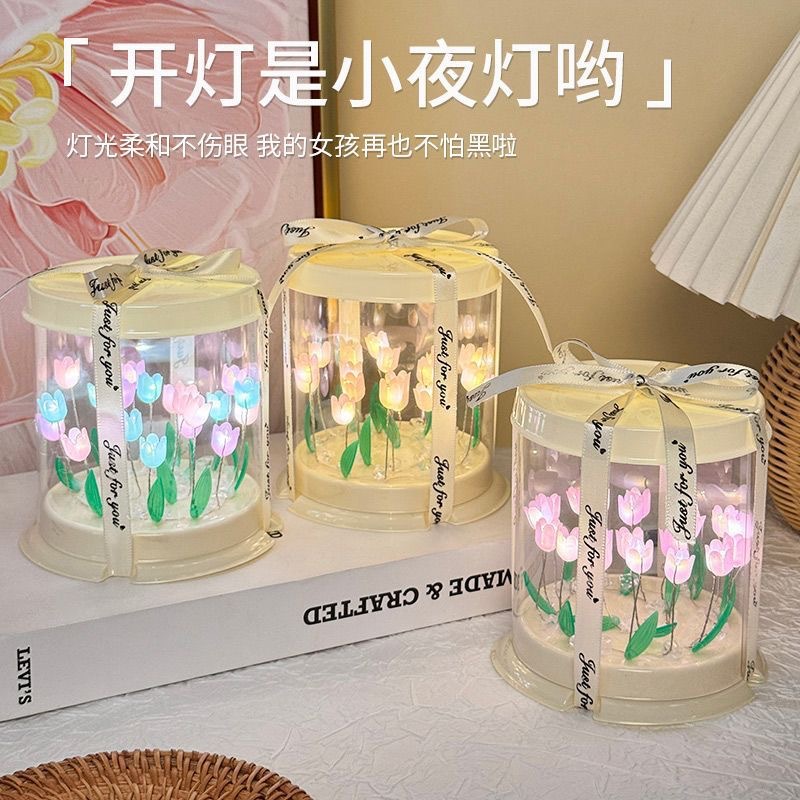 【高颜值伴手礼!】郁金香花海小夜灯创意爆款手工diy材料包蛋糕盒浪漫氛围灯高颜值。xb