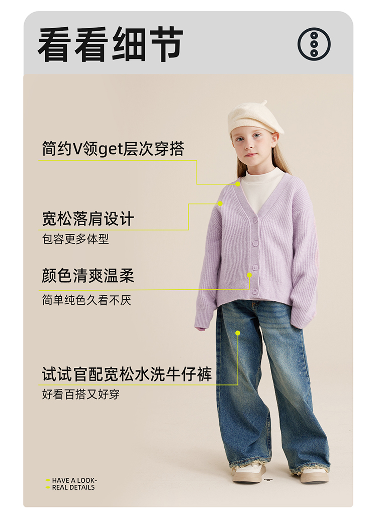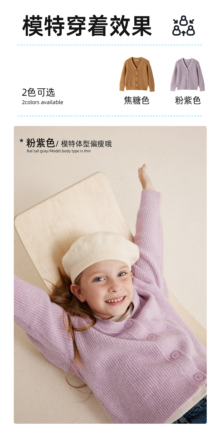【安哥拉纤绒纱 柔软抗起球】儿童气质百搭开衫毛衣PQMY2314