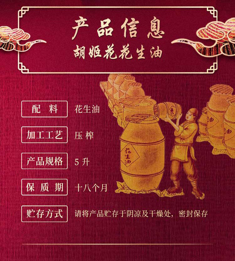胡姬花 金衣玉食古法花生油5L(包邮直发)
