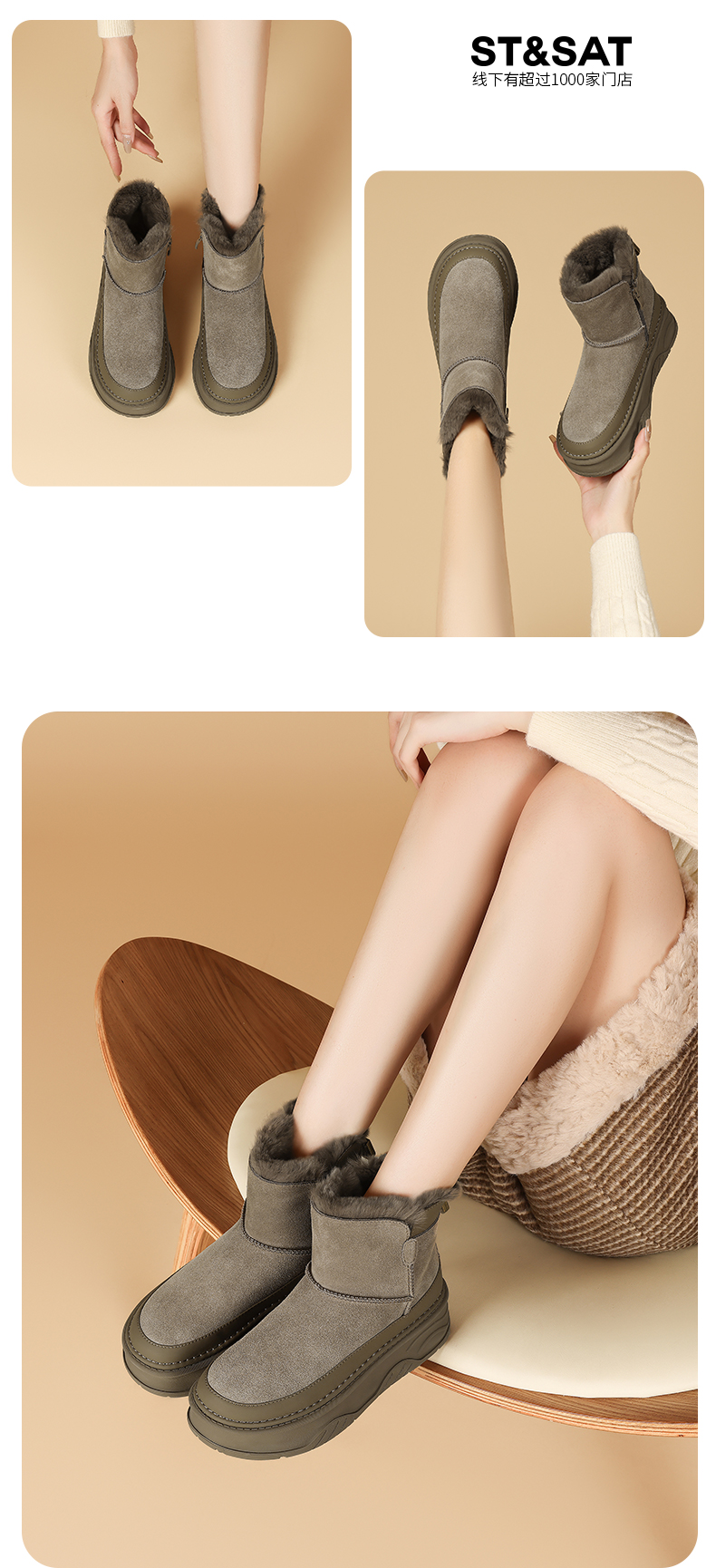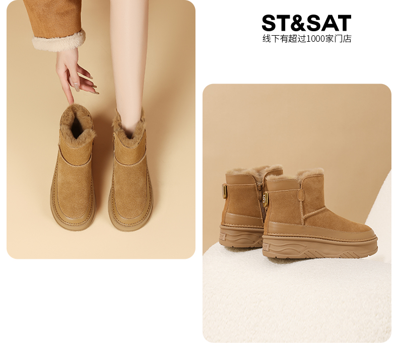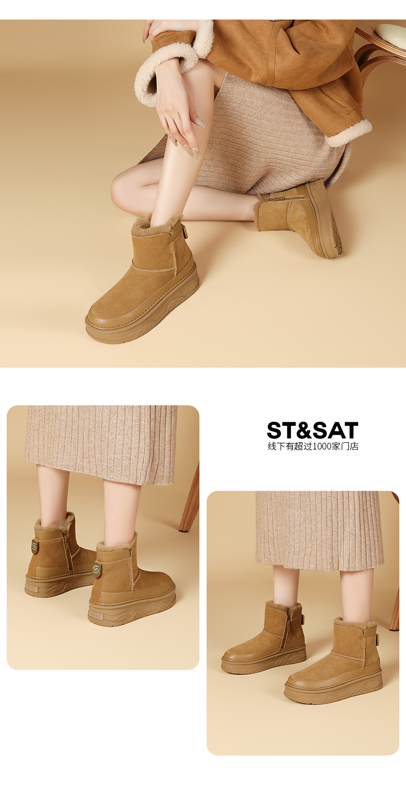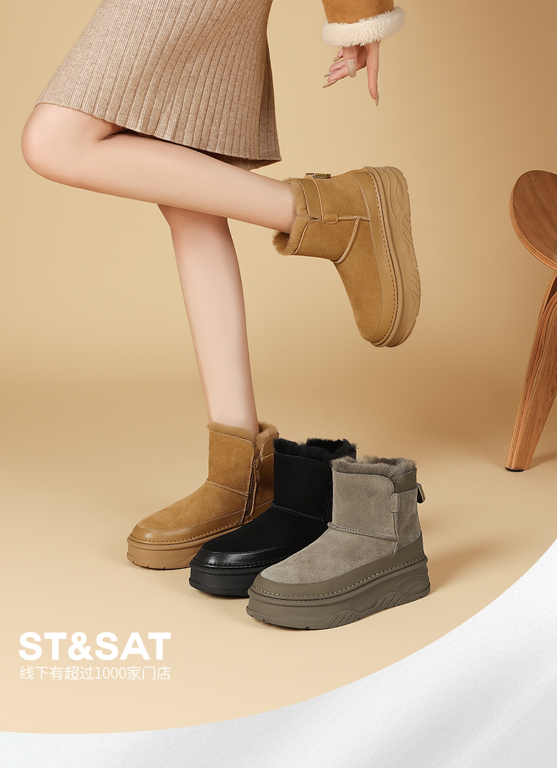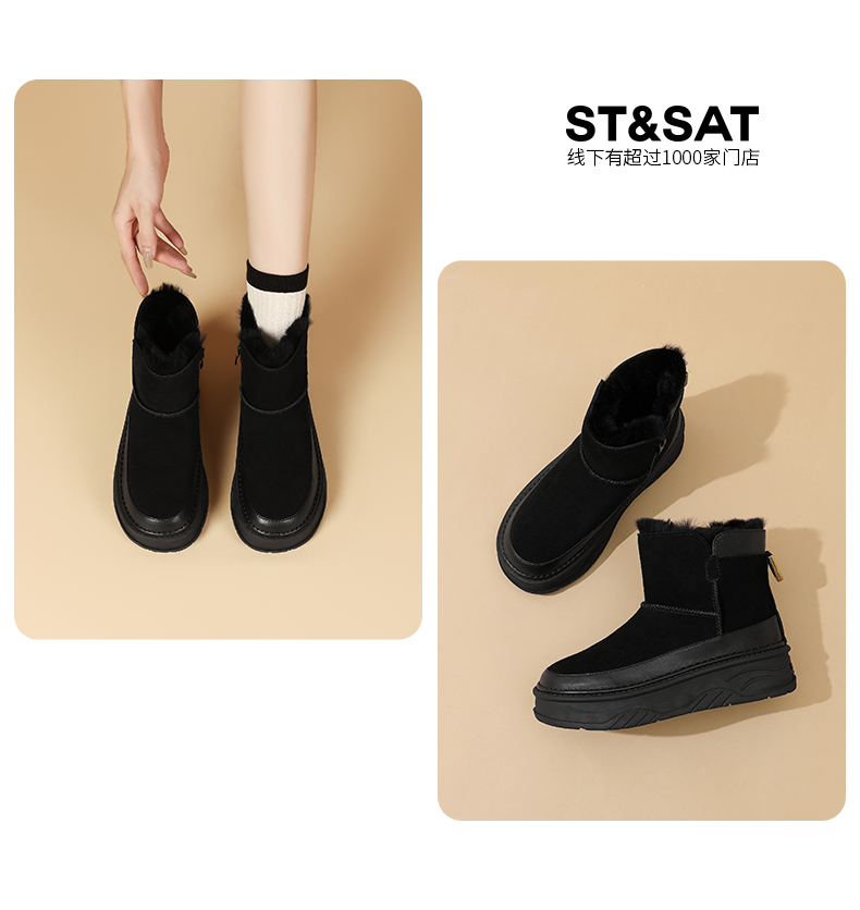 星期六时尚百搭加绒保暖厚底雪地靴SSC411A11P