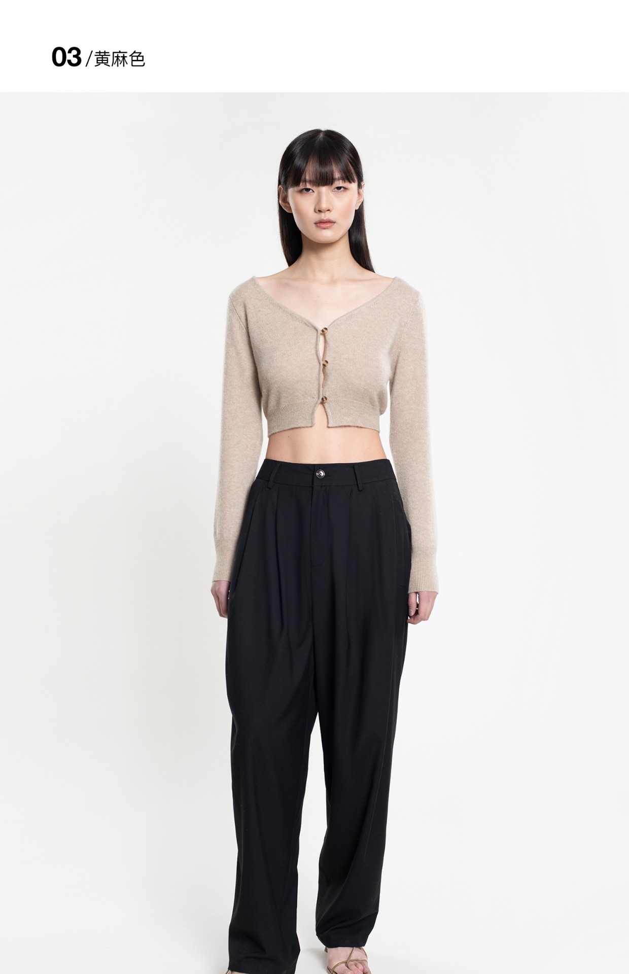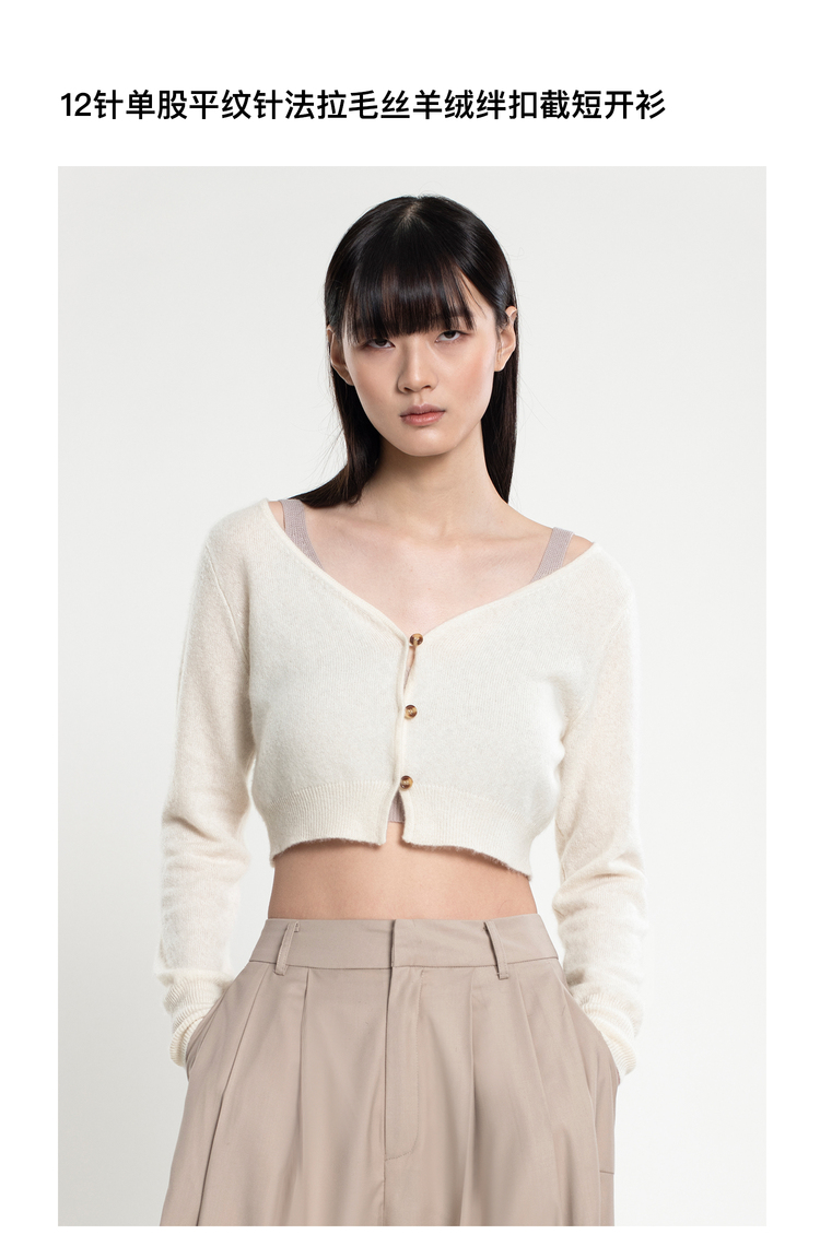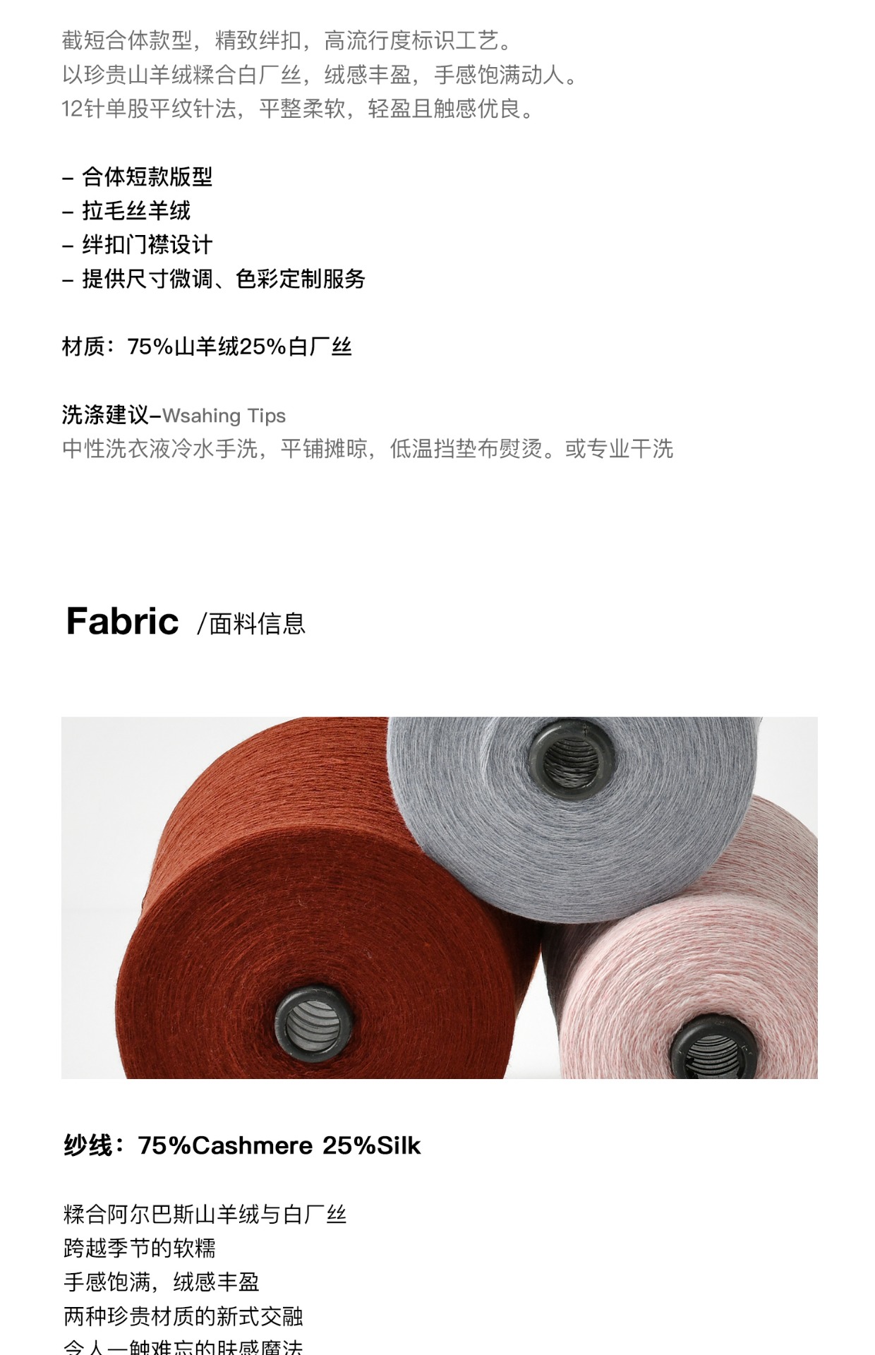 2022新款拉毛丝羊绒12针单股绊扣短款开衫