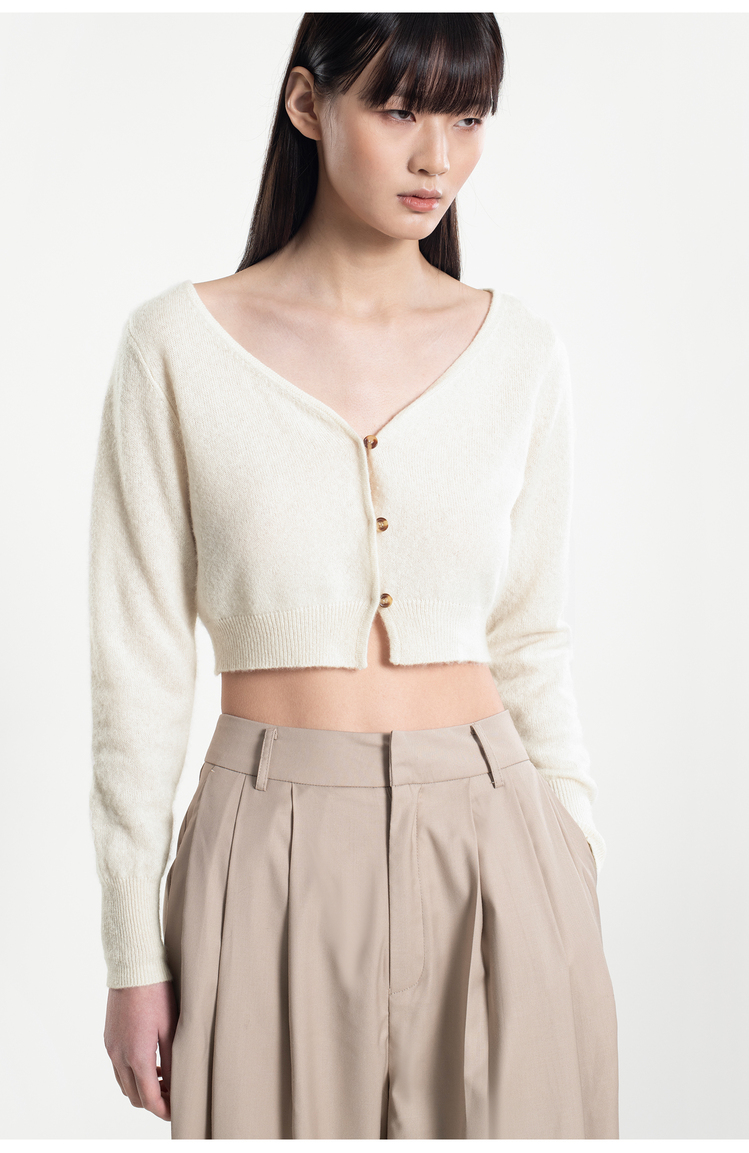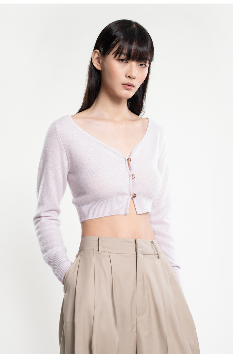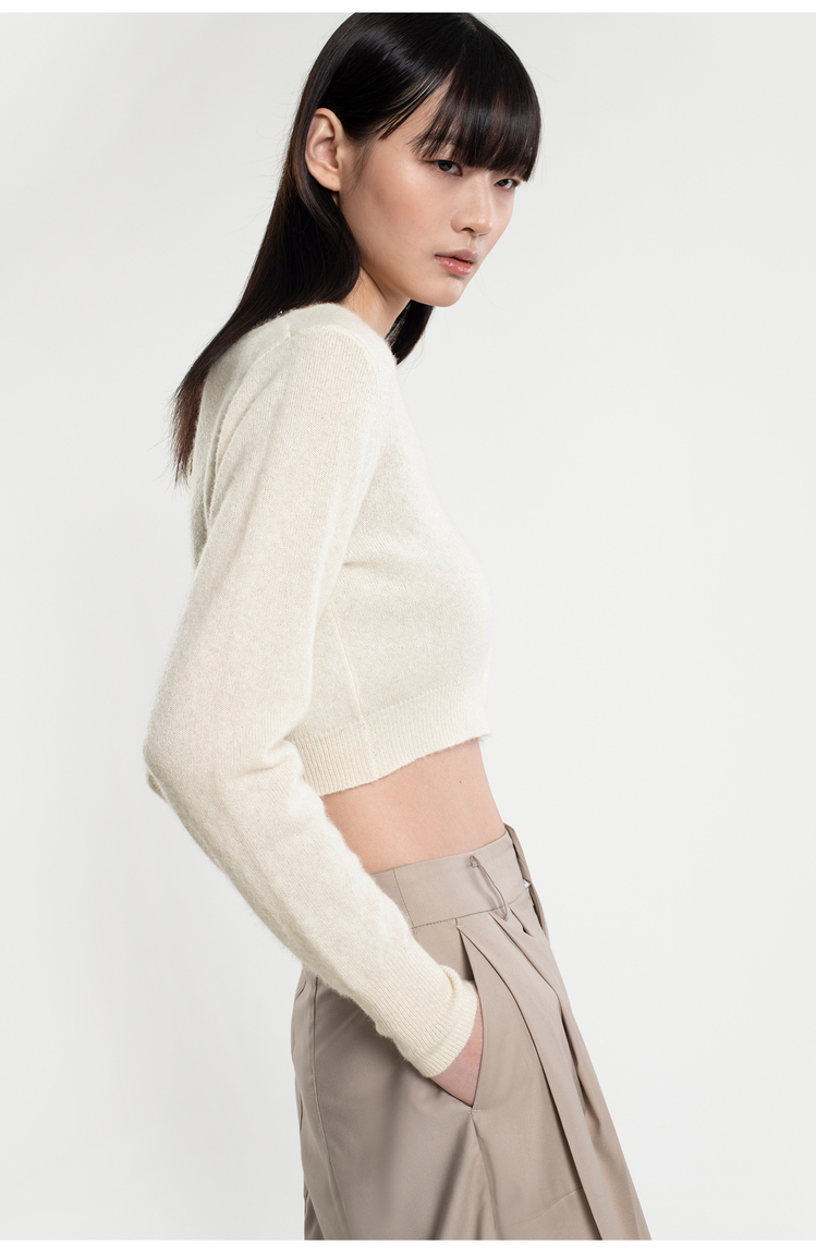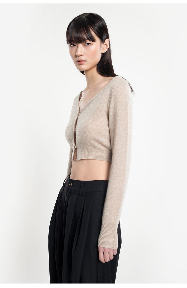 2022新款拉毛丝羊绒12针单股绊扣短款开衫