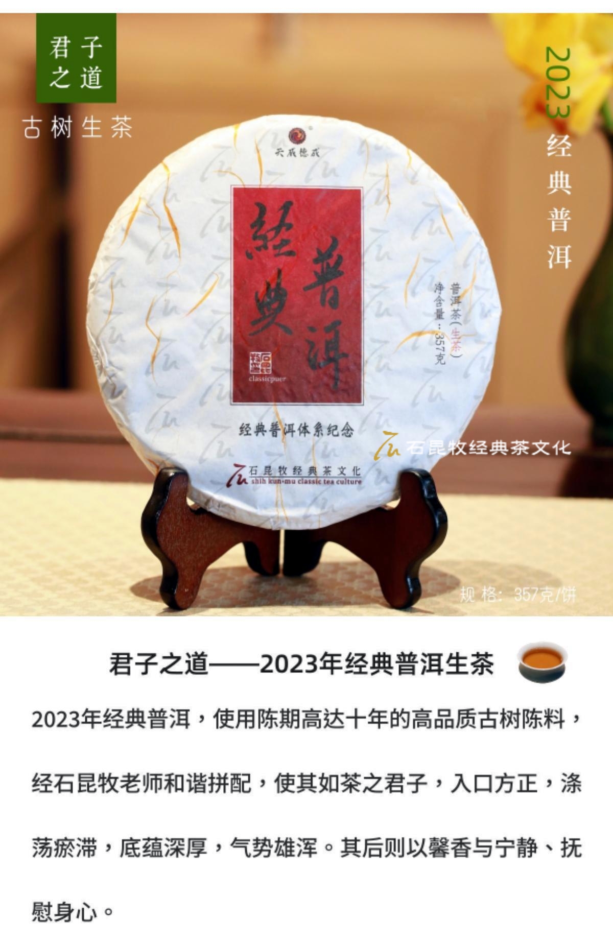 2023年经典普洱 古树生茶 君子之道 石昆牧老师定制