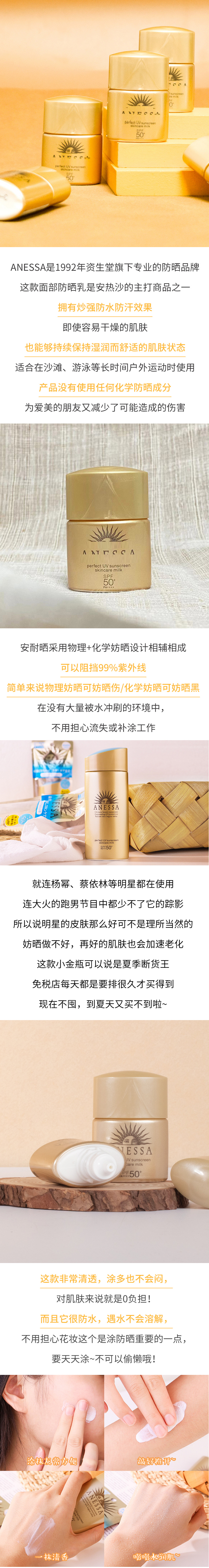 资生堂安耐晒安热沙小样水能户外防晒乳小金瓶全身防晒霜12ml/20ml