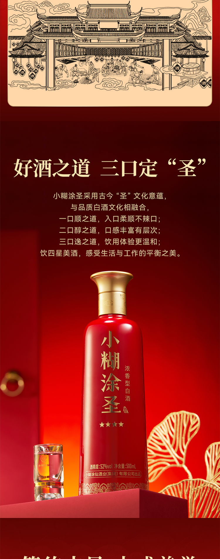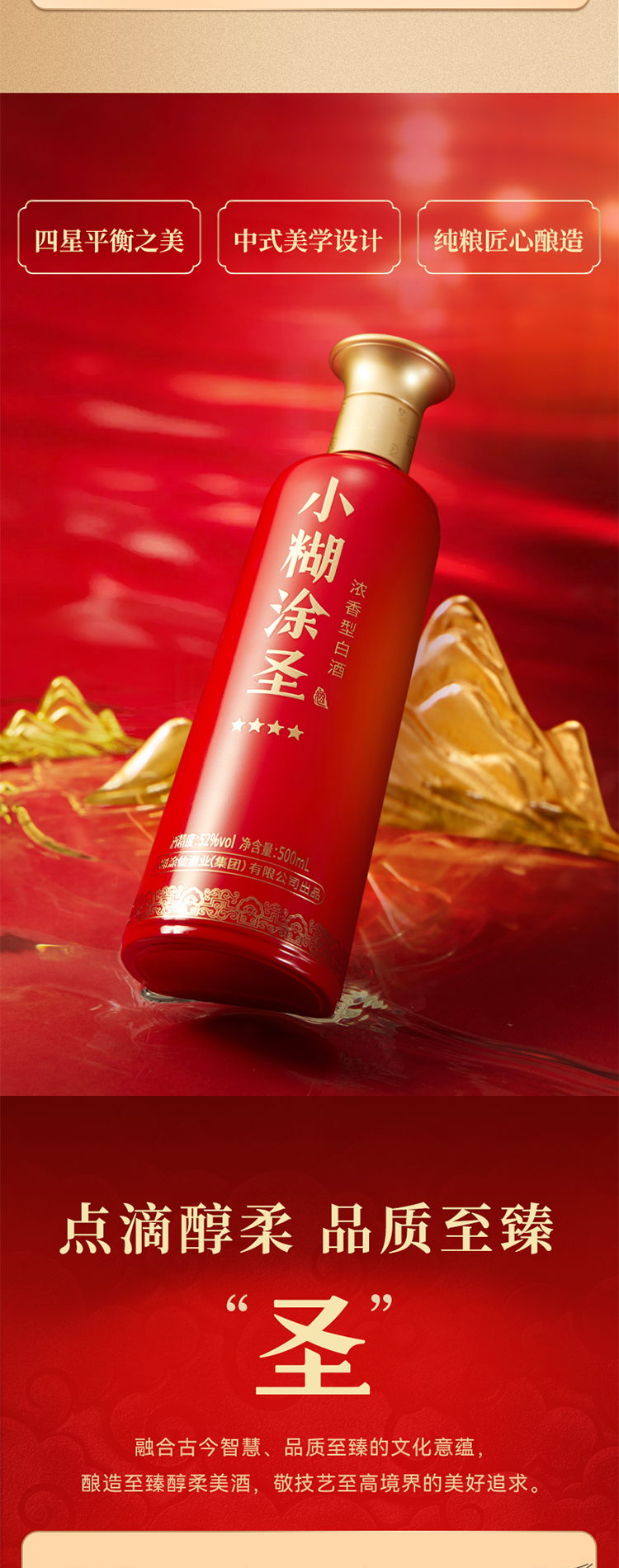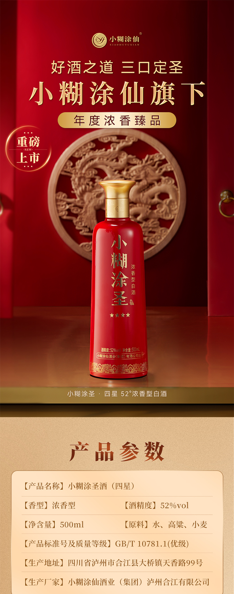 小糊涂仙旗下品牌小糊涂圣(四星)52度500ml裸瓶装臻品浓香白酒自饮送礼宴席
