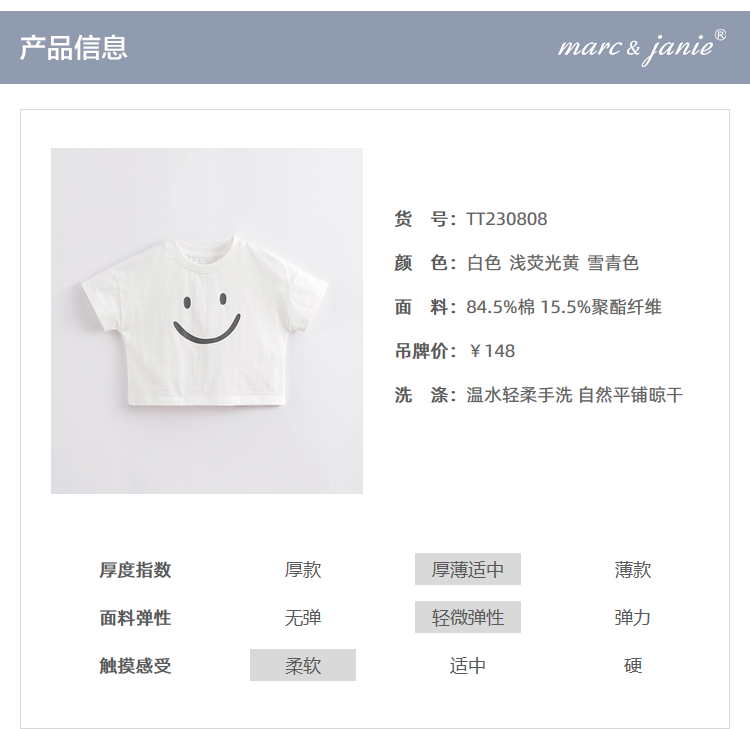 马克珍妮新款 女童全棉短袖T恤230808