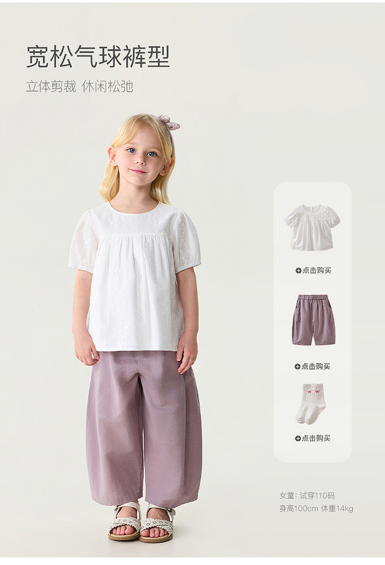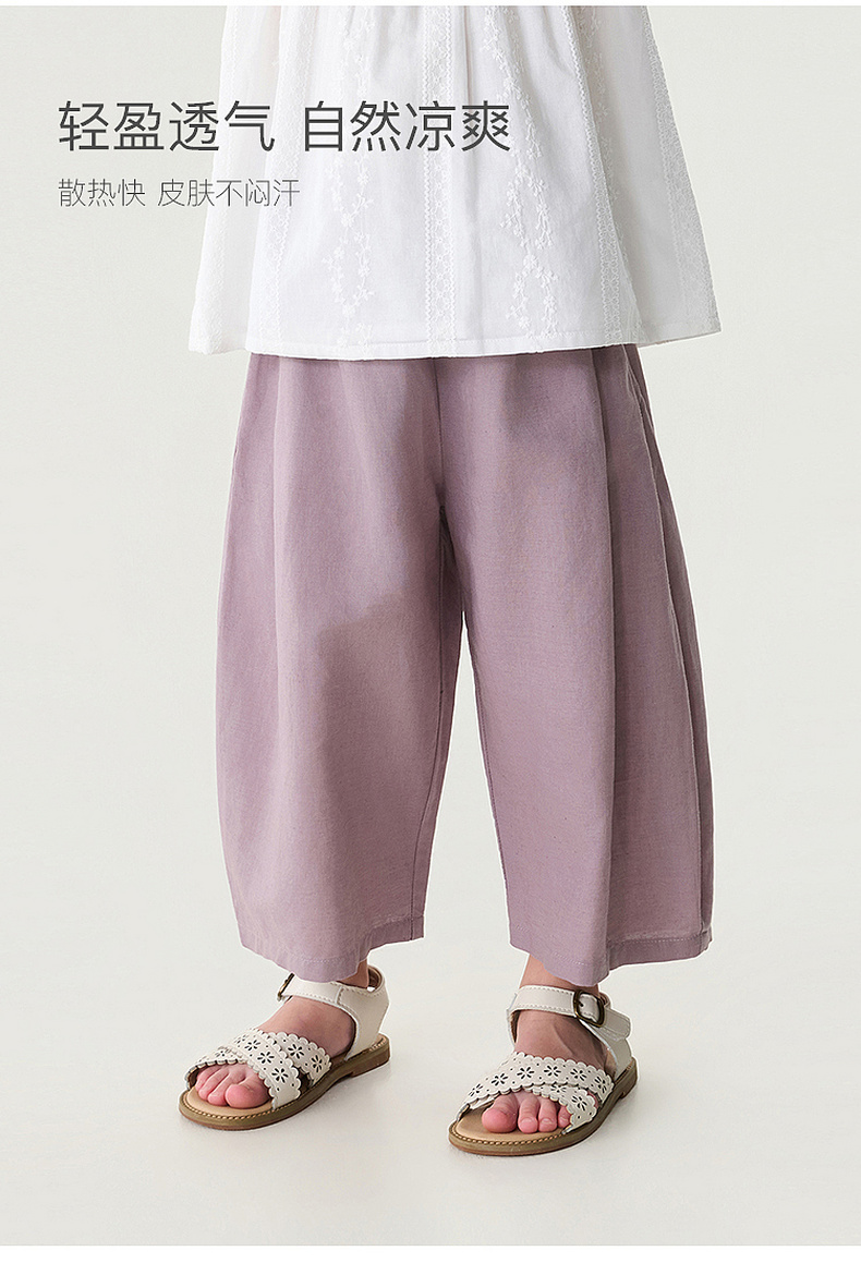 马克珍妮清凉亚麻女童休闲气球裤2026年夏装新款560973
