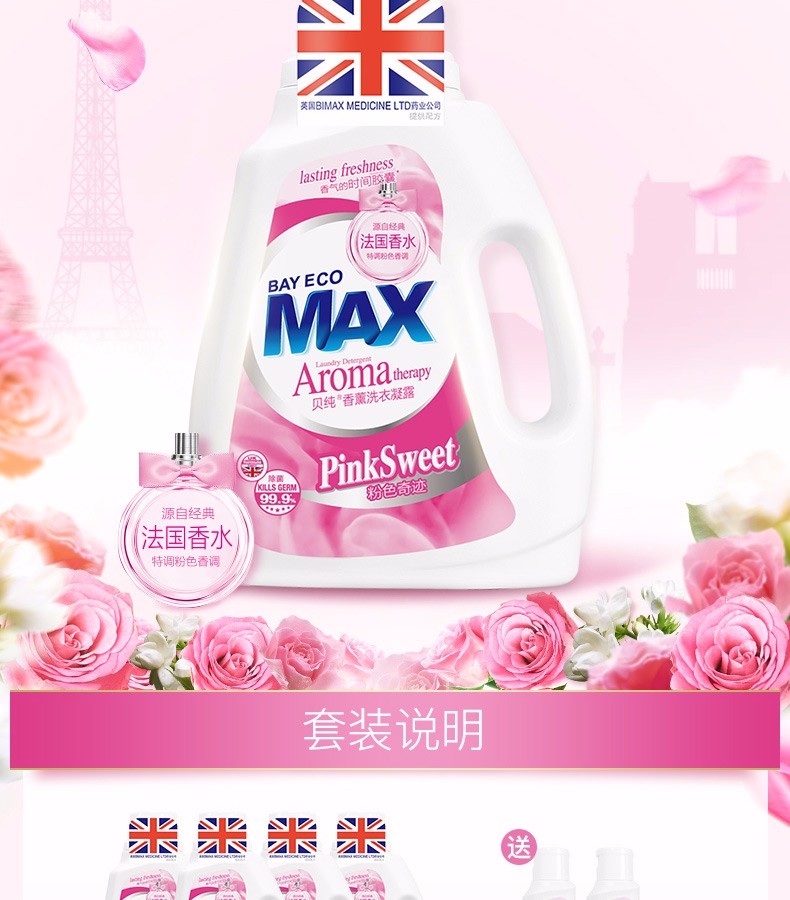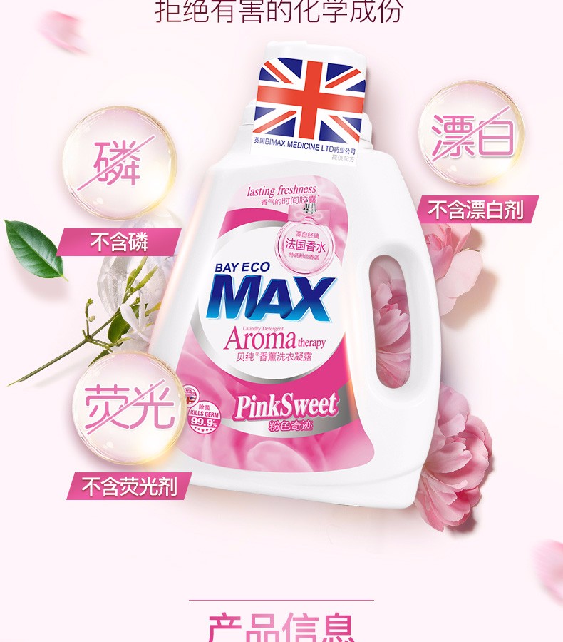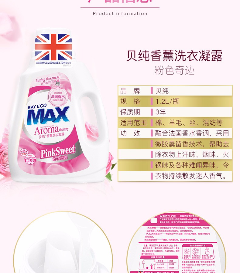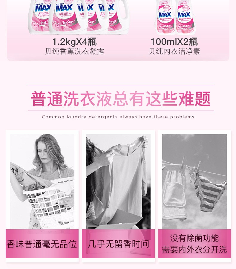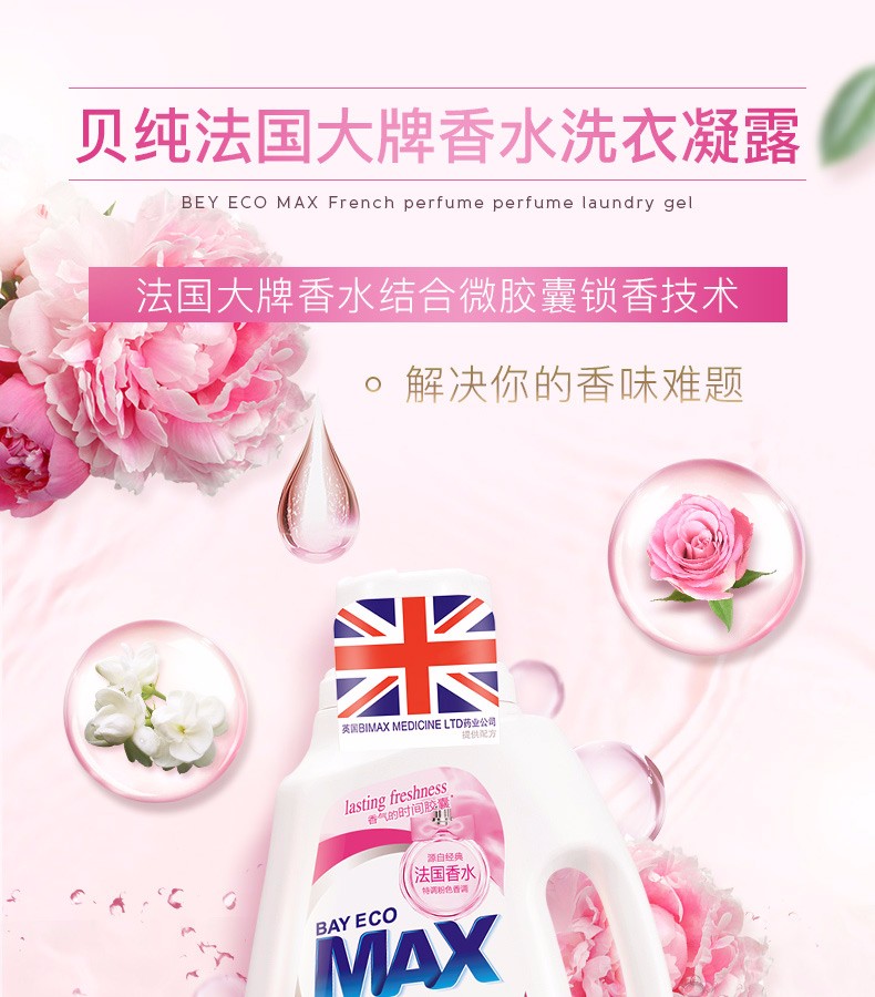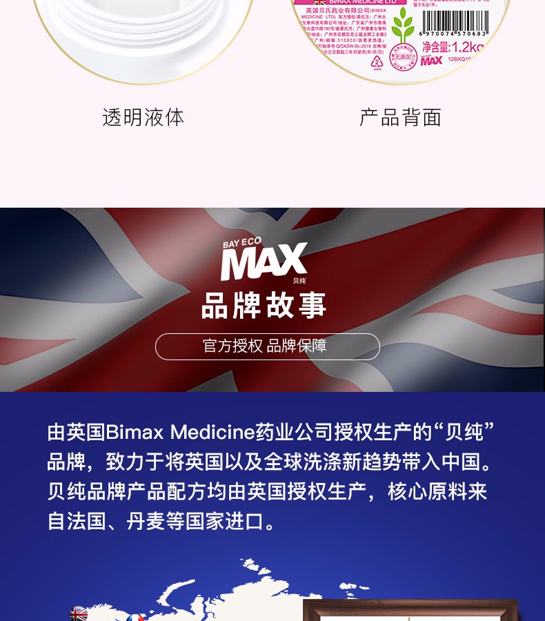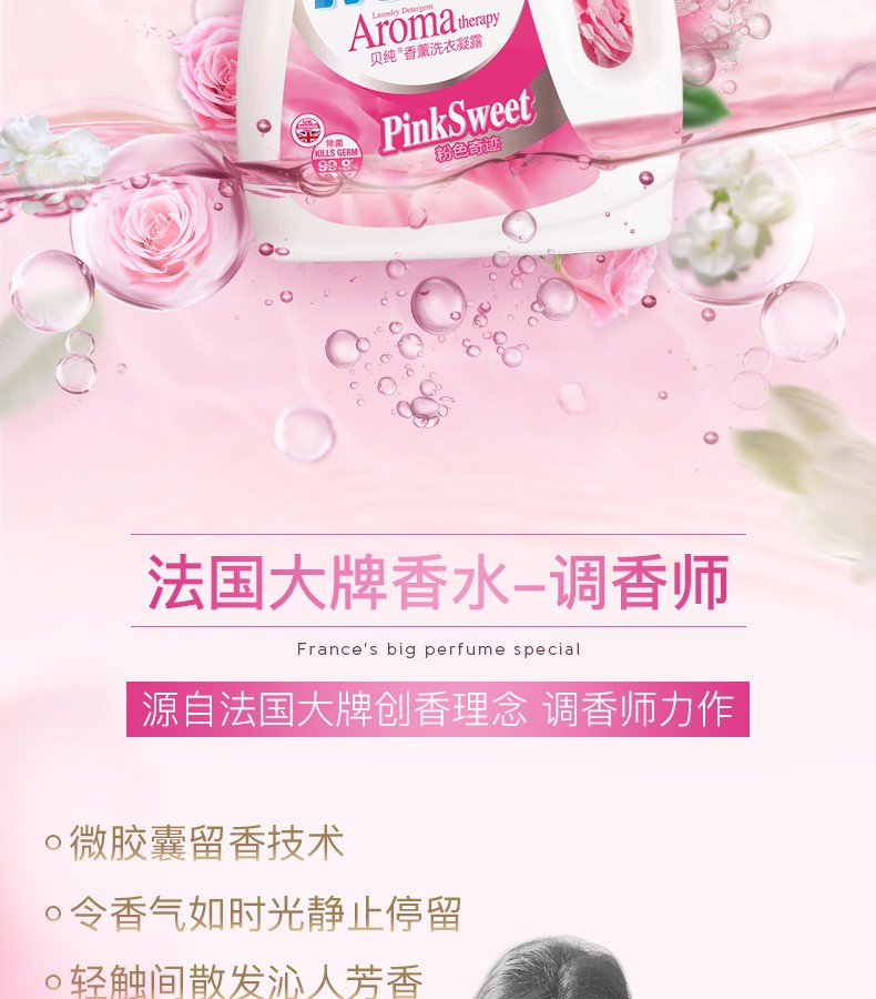 【加送80ML内衣洁净素】贝纯 法国香水洗衣凝露 1.2KG*2瓶JPY带授权招加盟代理