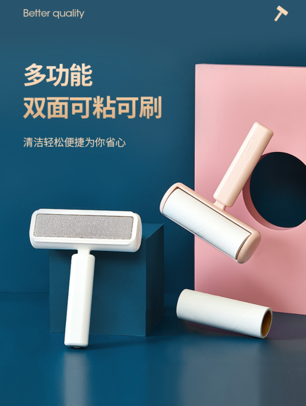 二合一粘毛器可刷可粘静电除毛刷 滚筒家用衣服除毛可撕纸黏毛去毛刷3.106