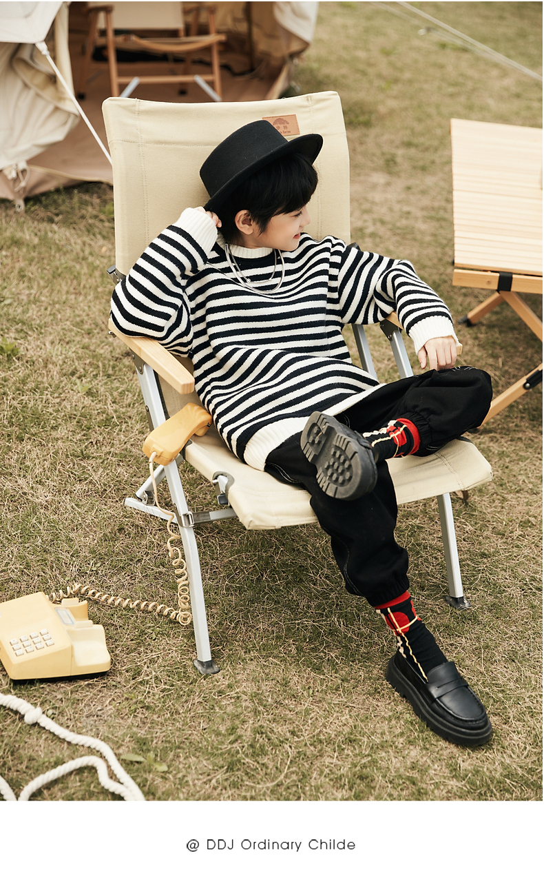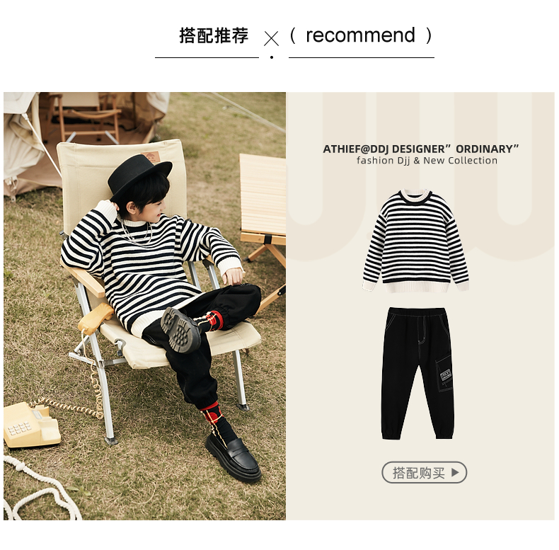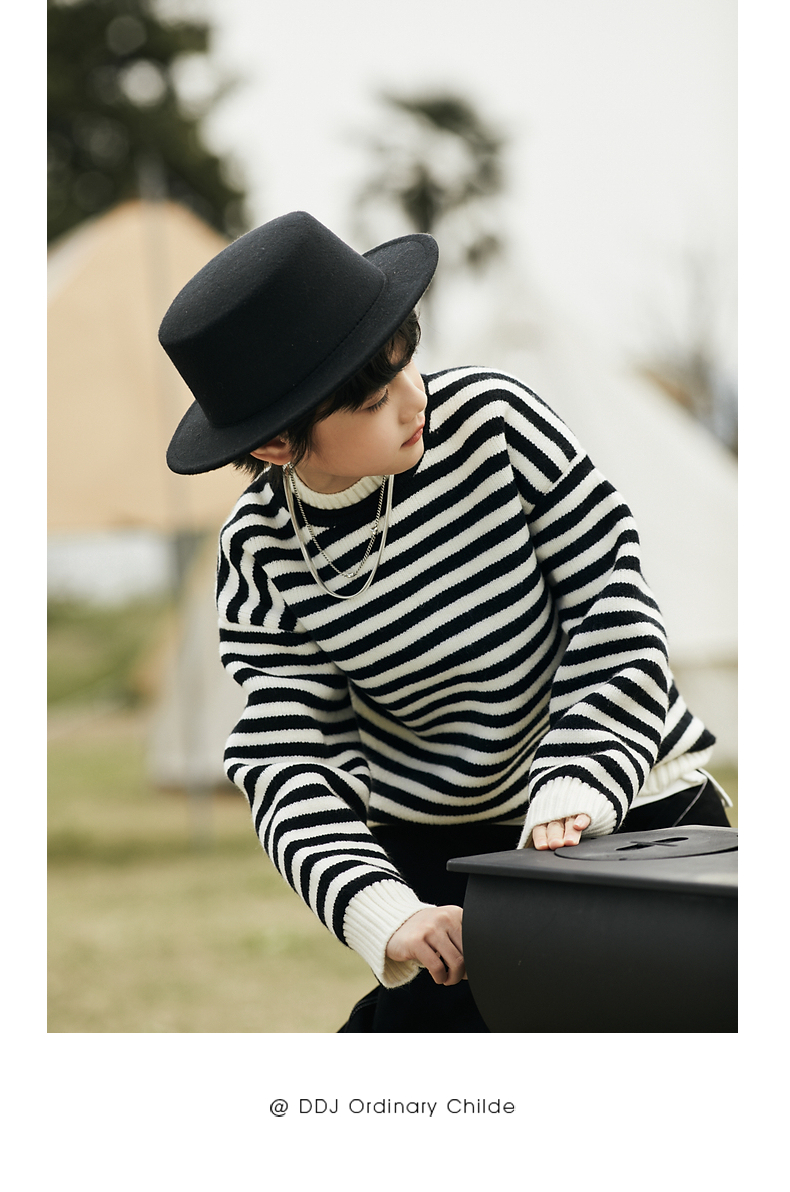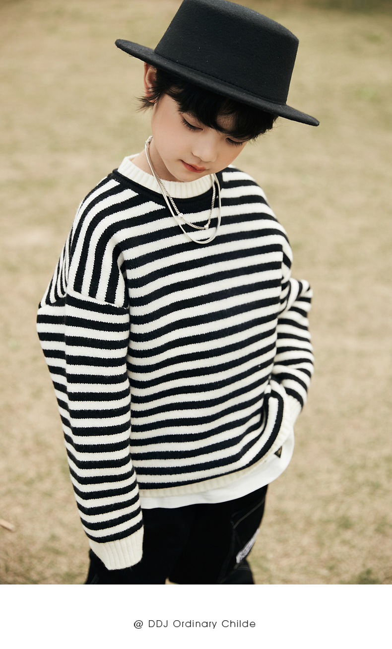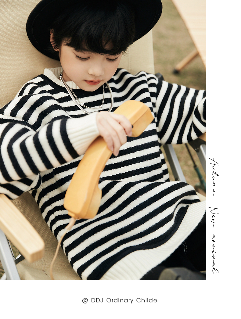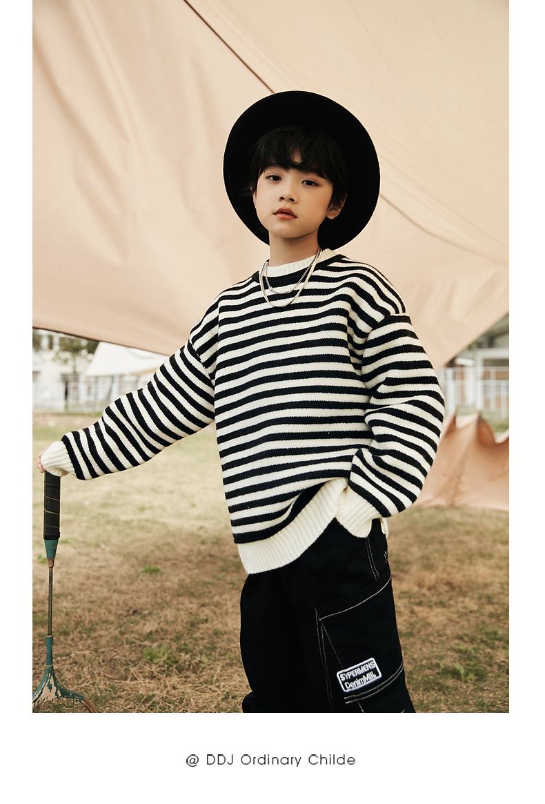 【团购价89.9元】1296多多家童装2023年冬季新款儿童线衫中大童条纹毛衣百搭舒适简约潮