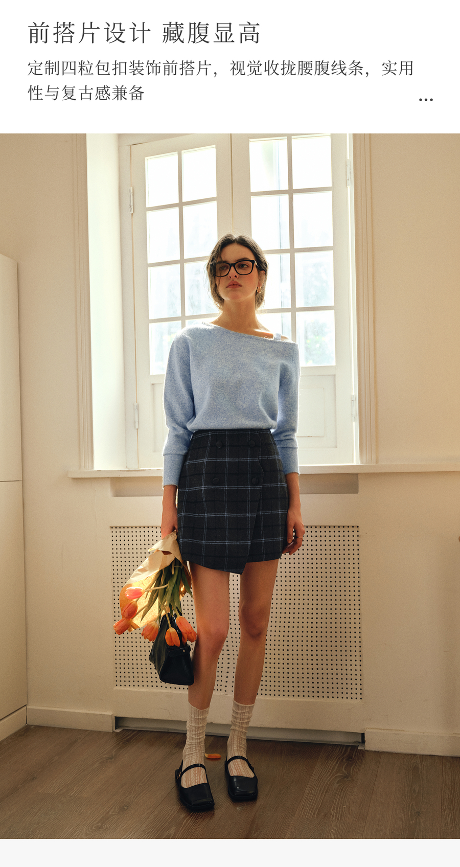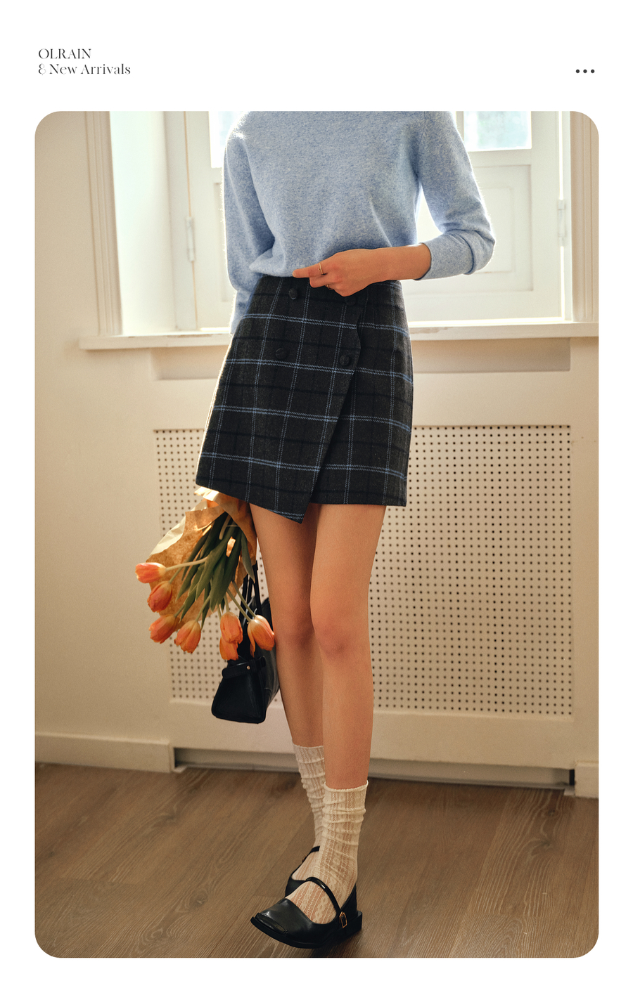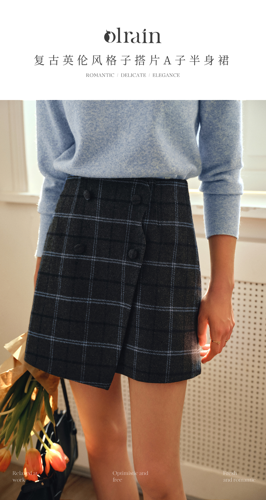 OLrain欧芮儿复古英伦风格子搭片A子半身裙女秋季2025新款包臀裙