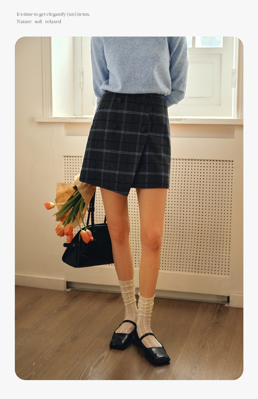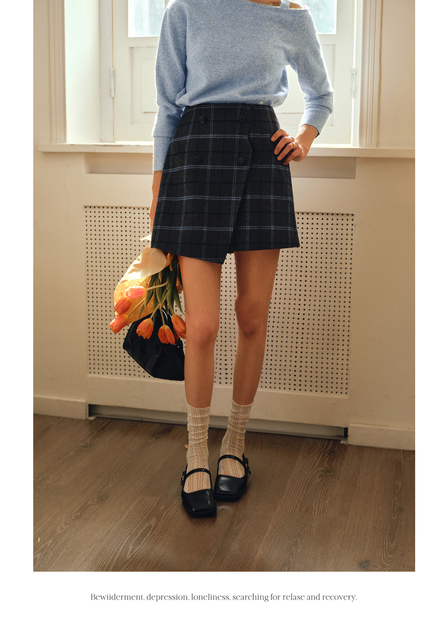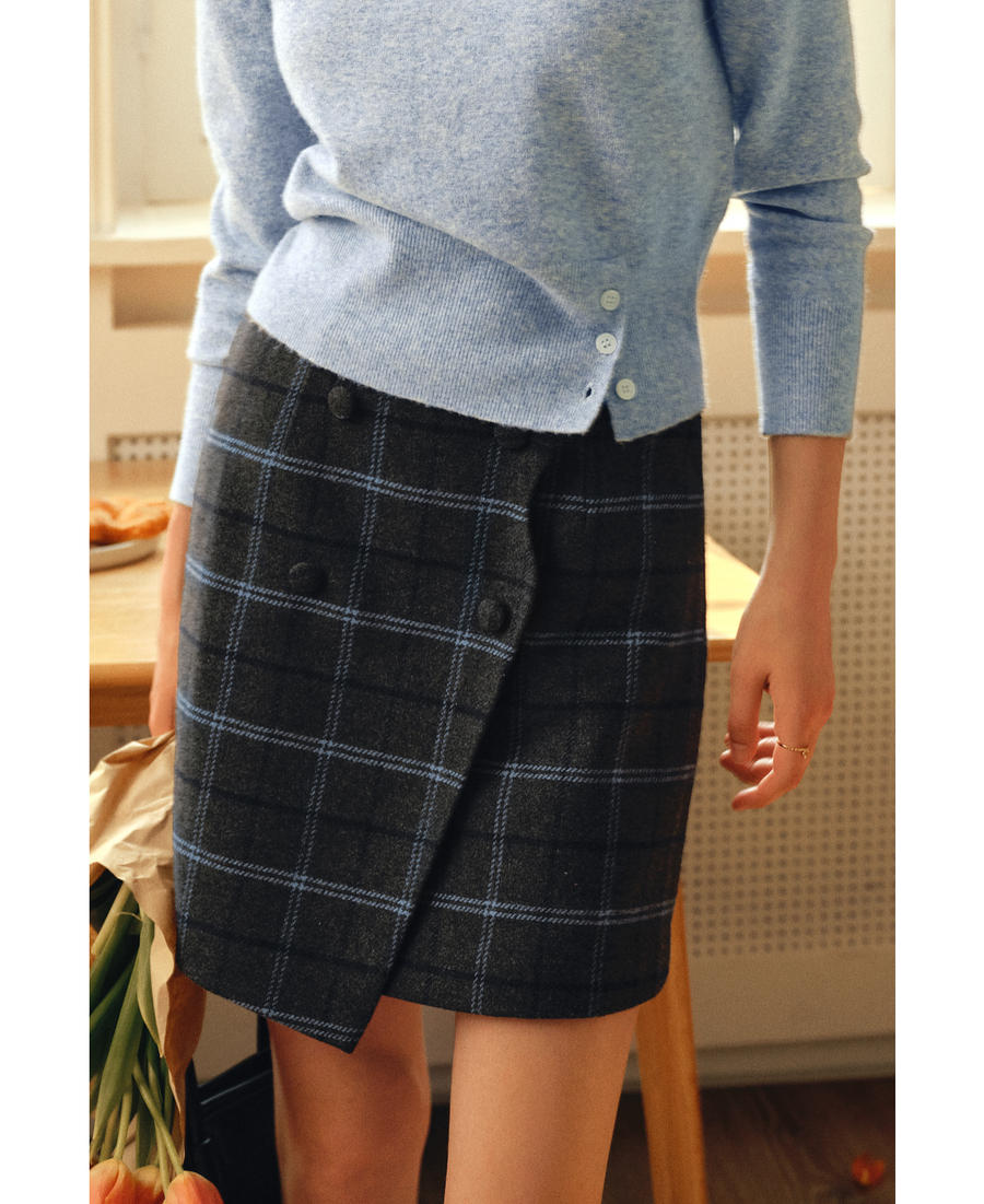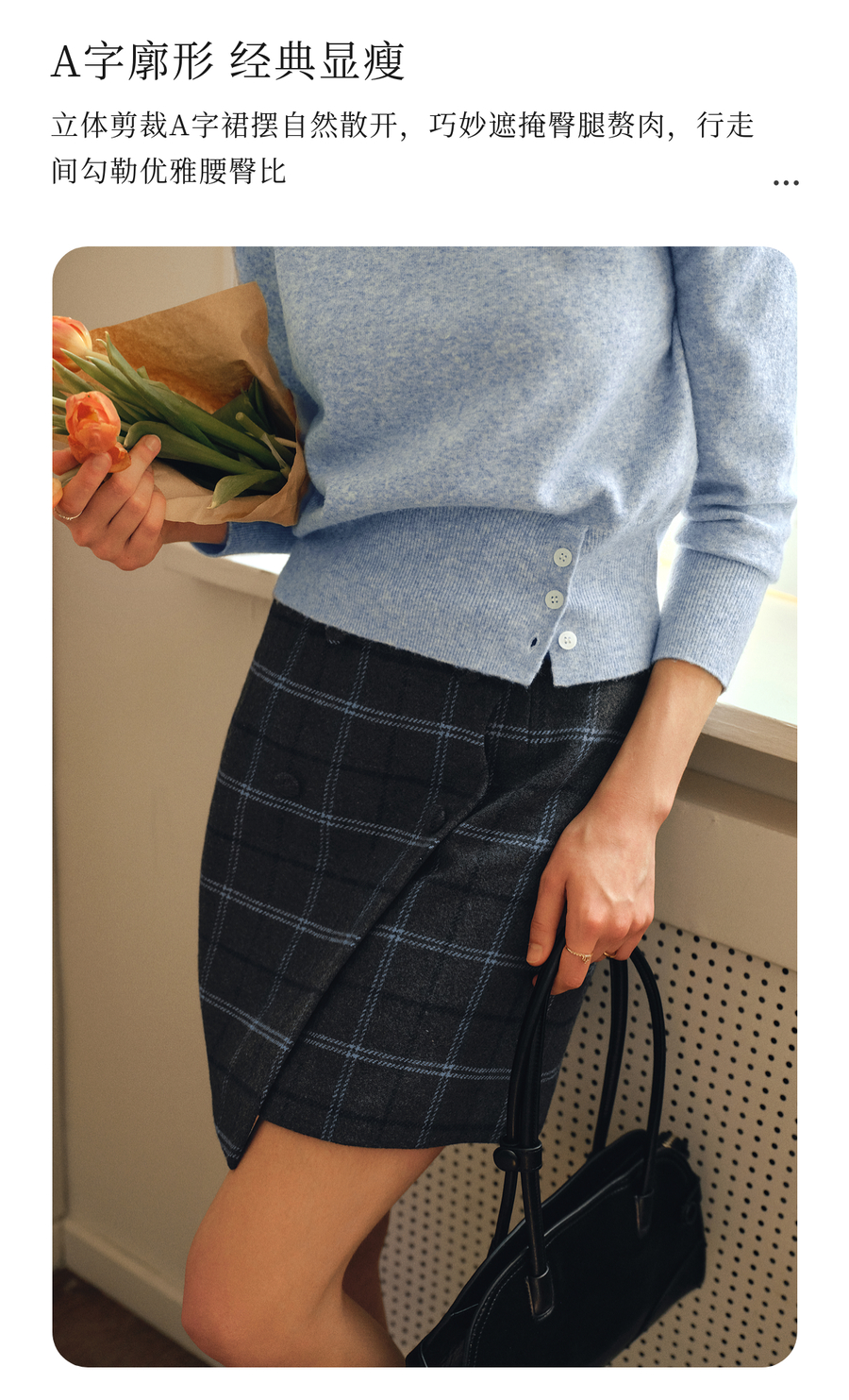 OLrain欧芮儿复古英伦风格子搭片A子半身裙女秋季2025新款包臀裙