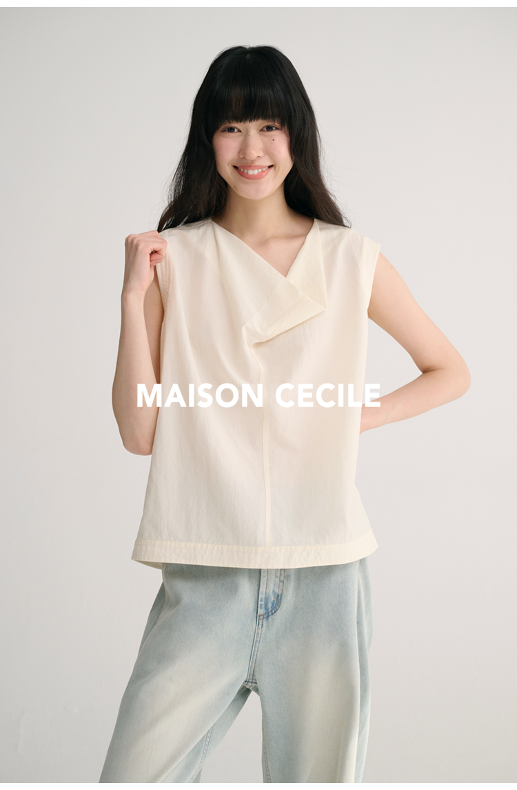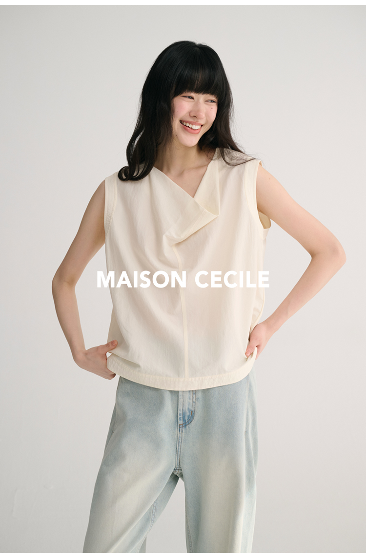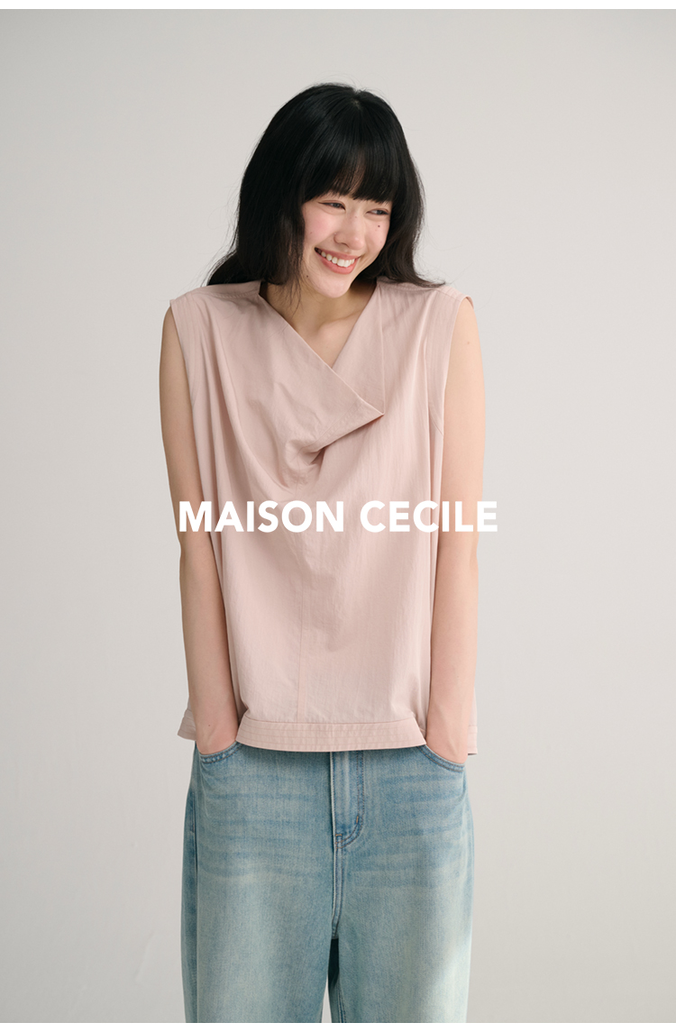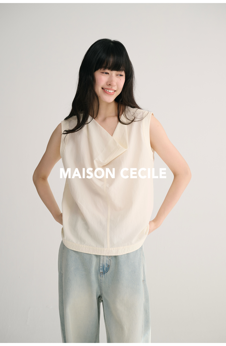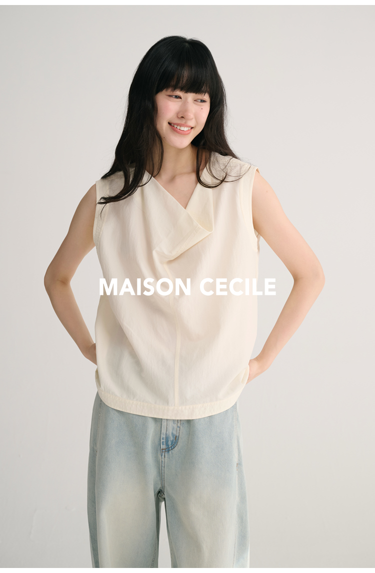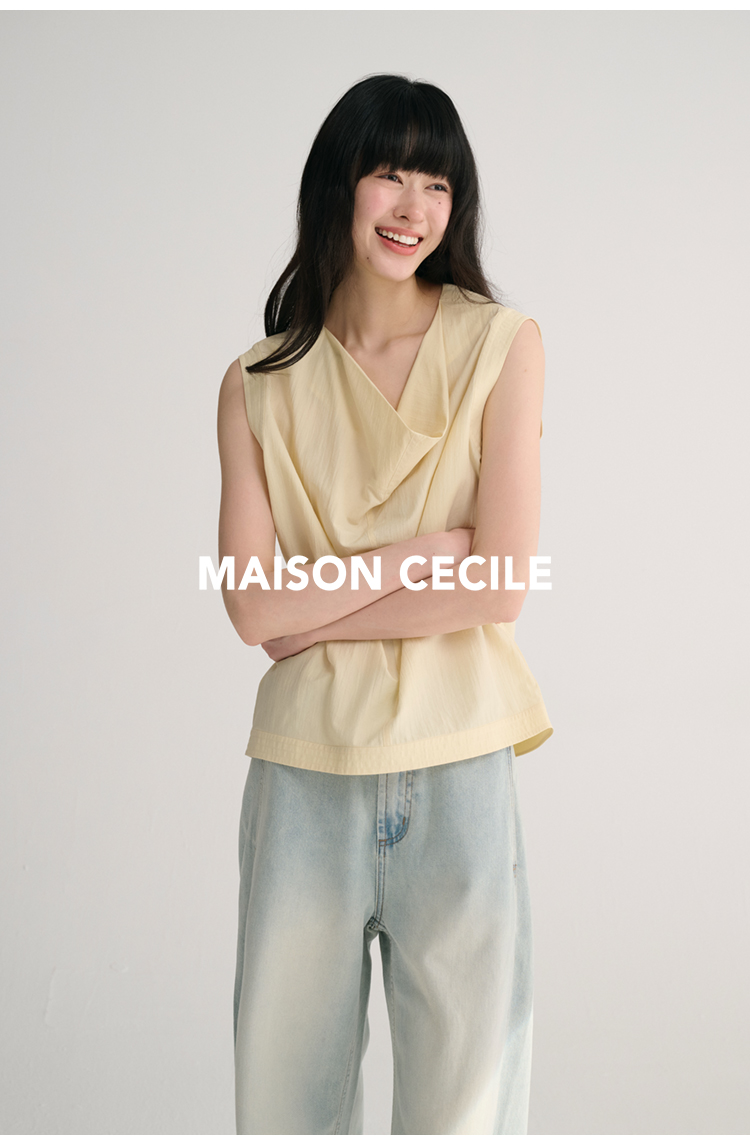 MAISON CECILE 三色/桑蚕丝荡领设计感简约优雅气质无袖背心上衣