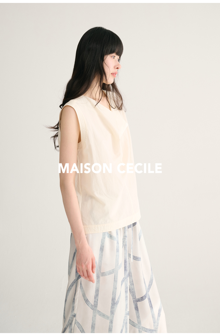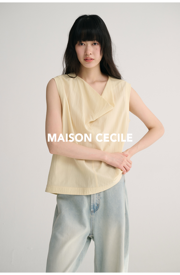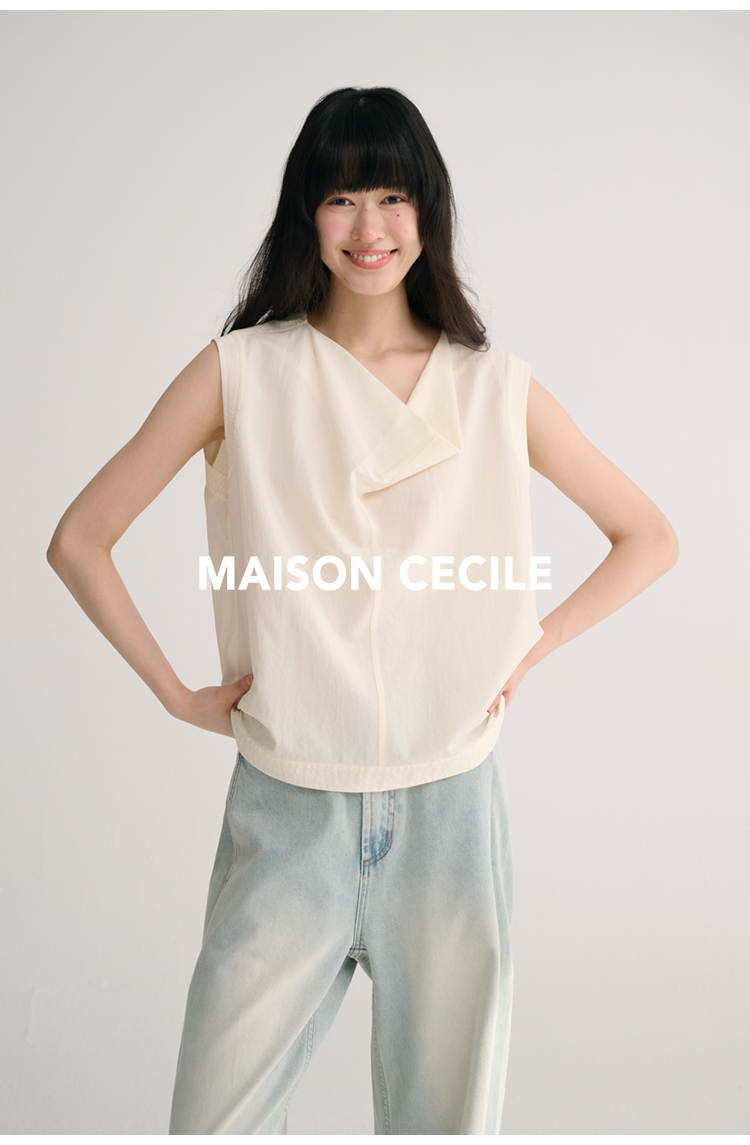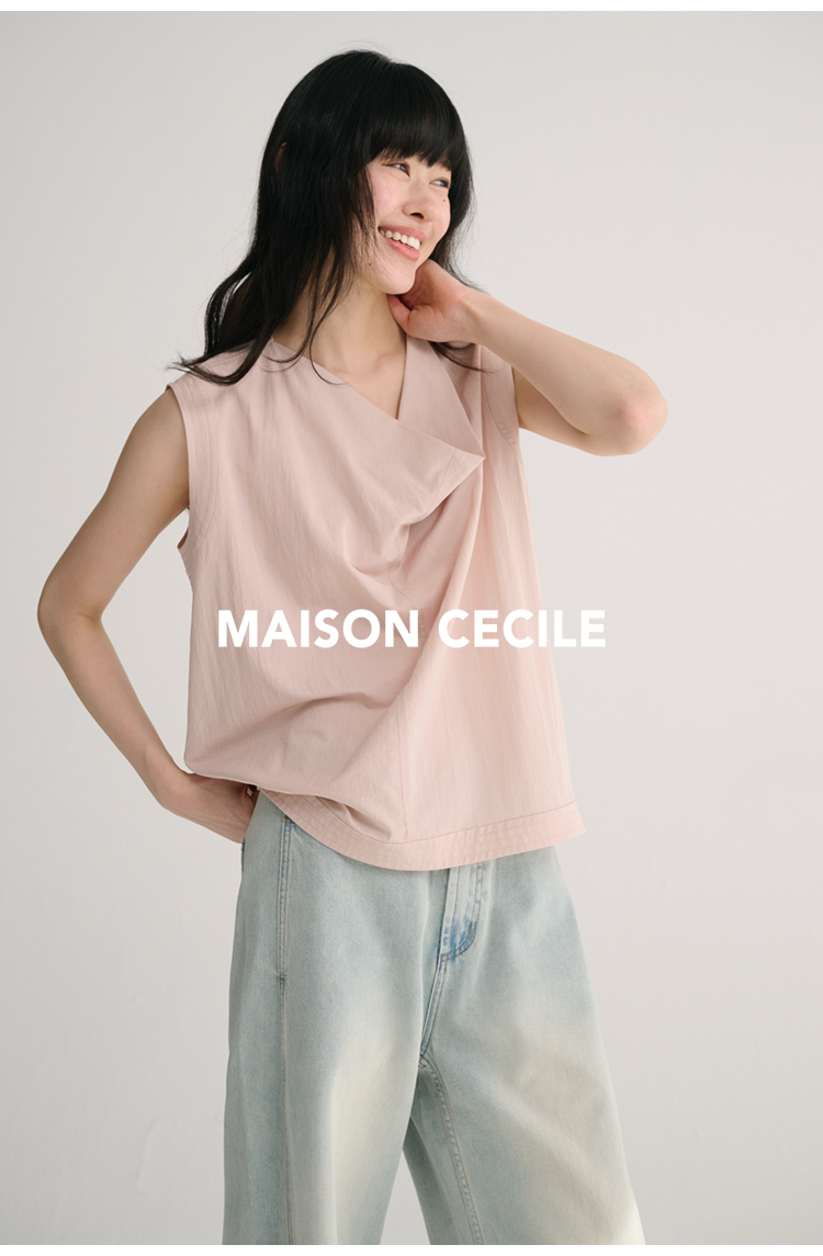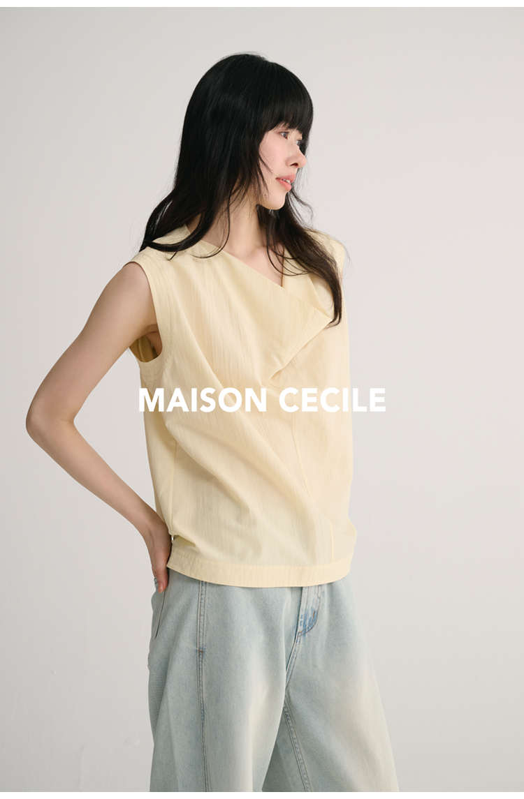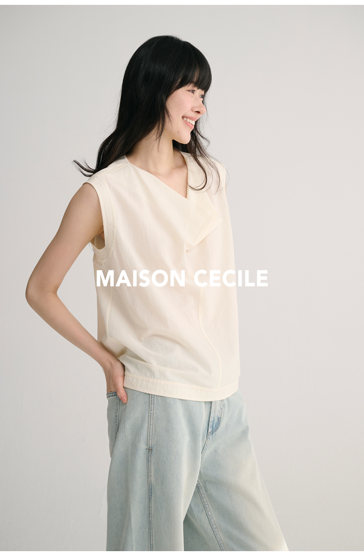 MAISON CECILE 三色/桑蚕丝荡领设计感简约优雅气质无袖背心上衣