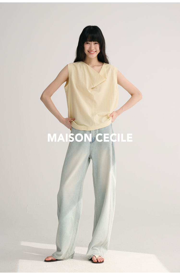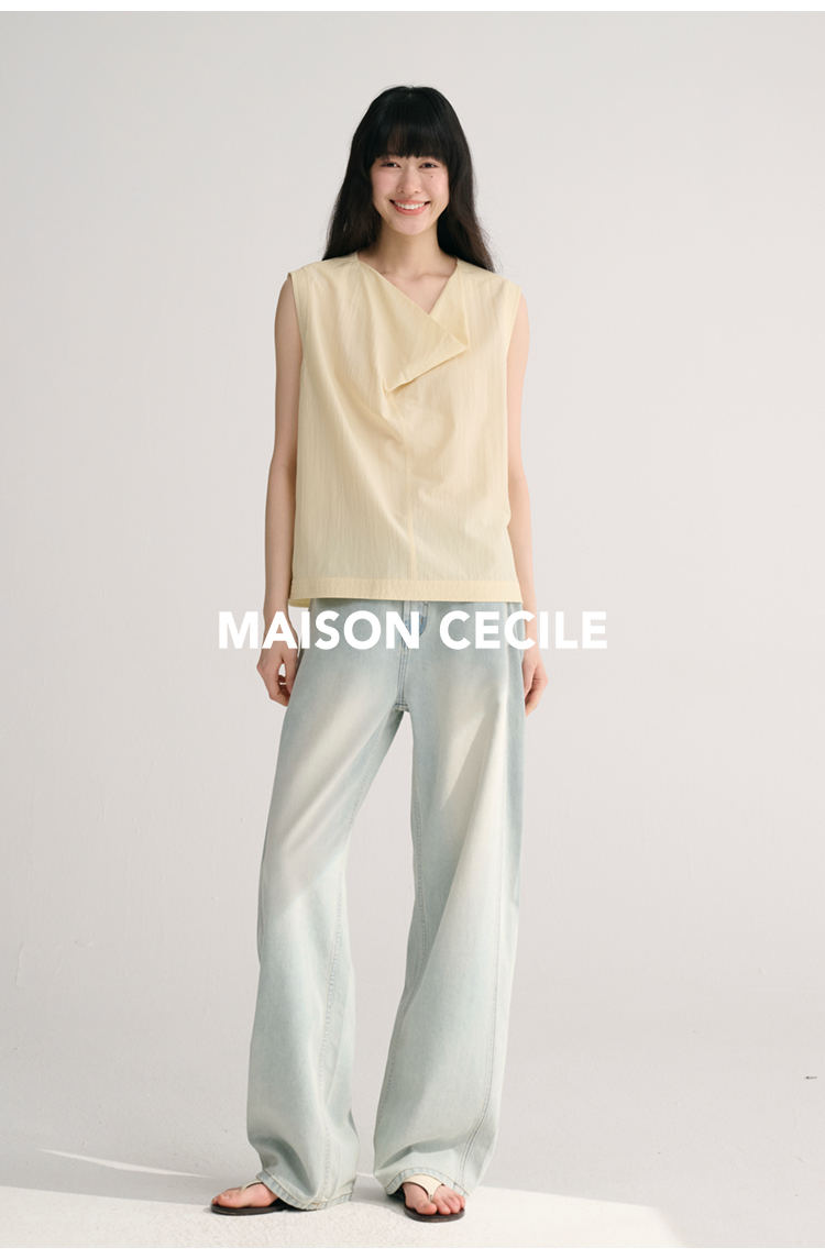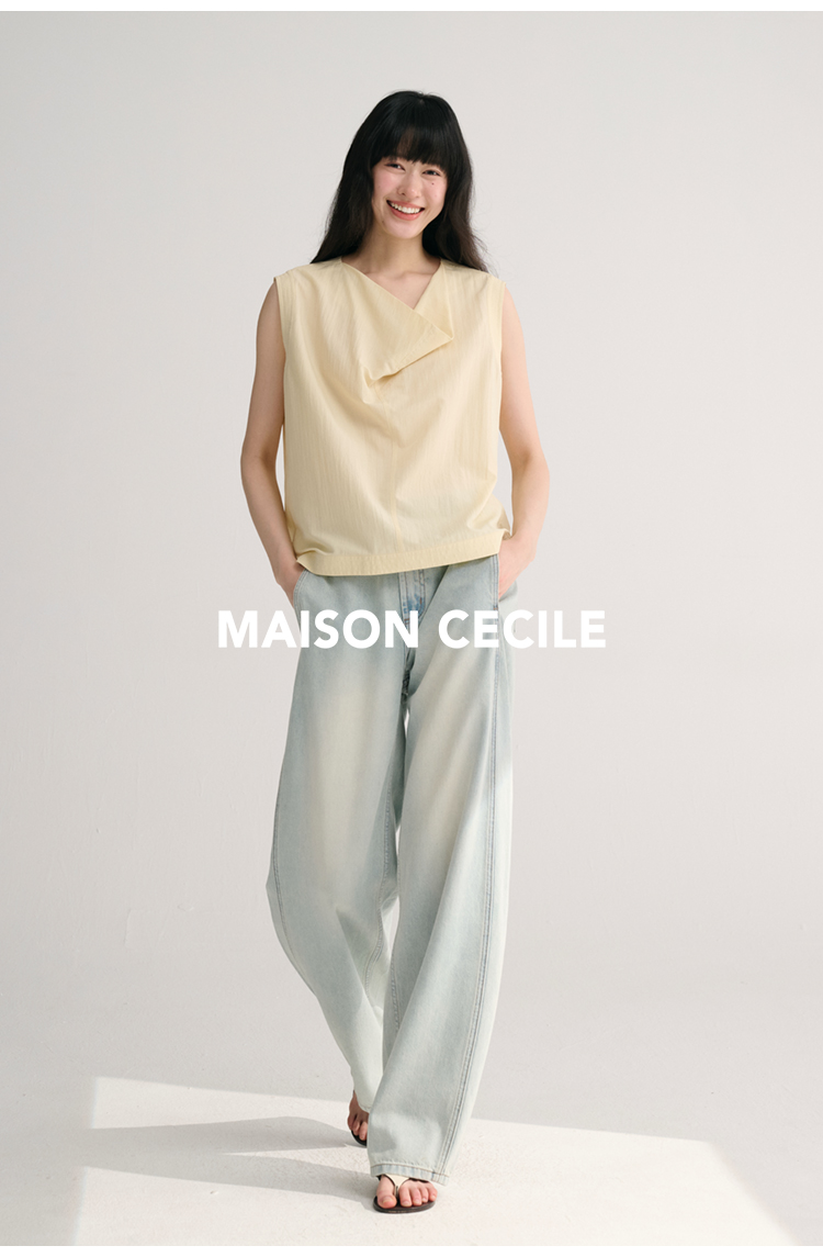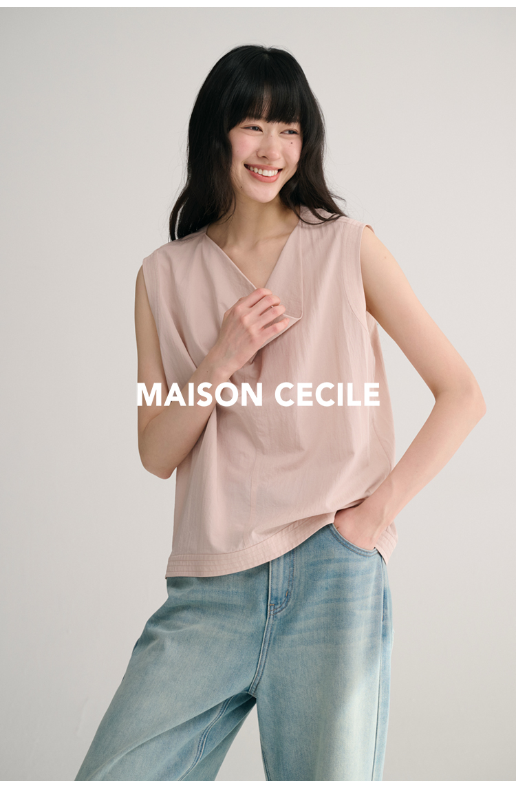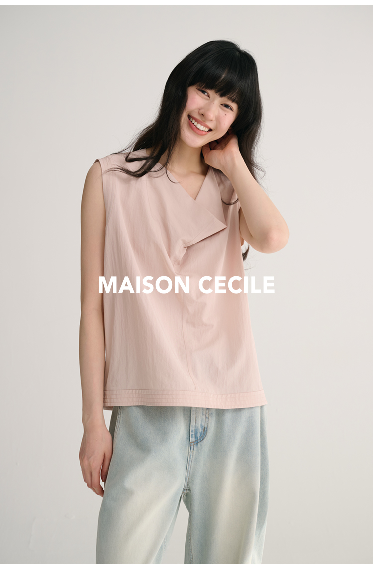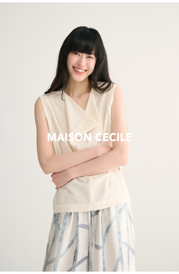 MAISON CECILE 三色/桑蚕丝荡领设计感简约优雅气质无袖背心上衣