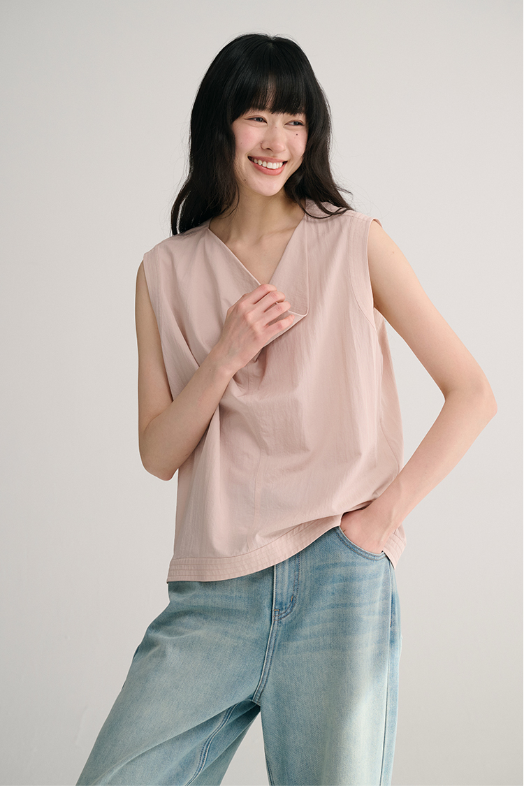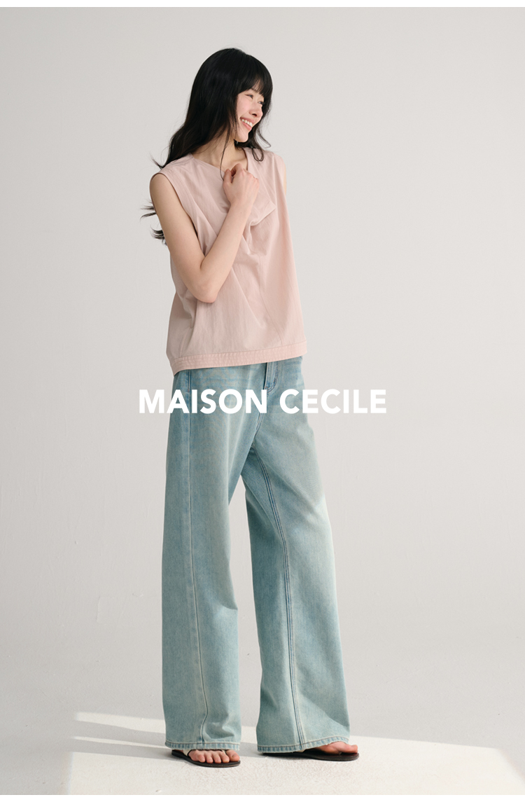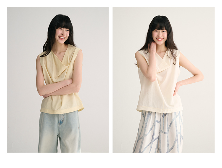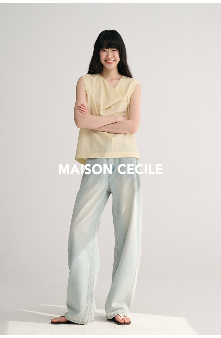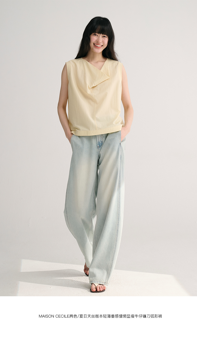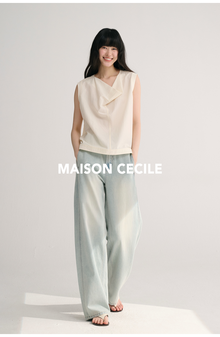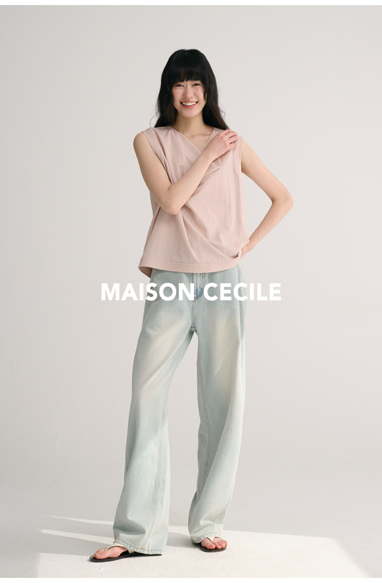 MAISON CECILE 三色/桑蚕丝荡领设计感简约优雅气质无袖背心上衣