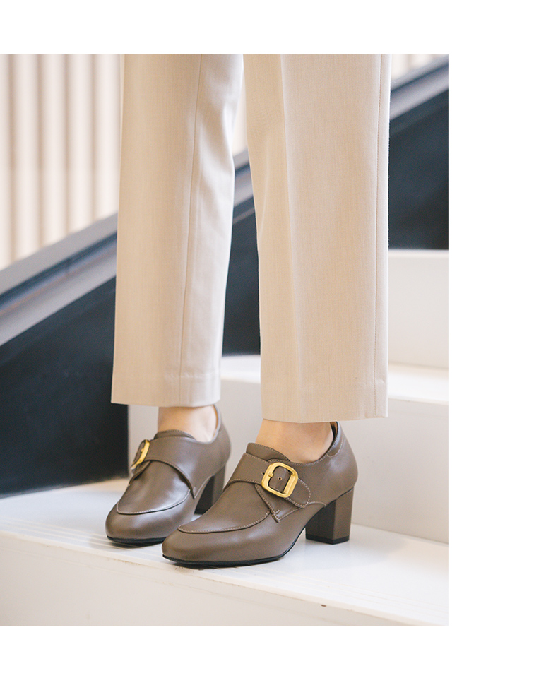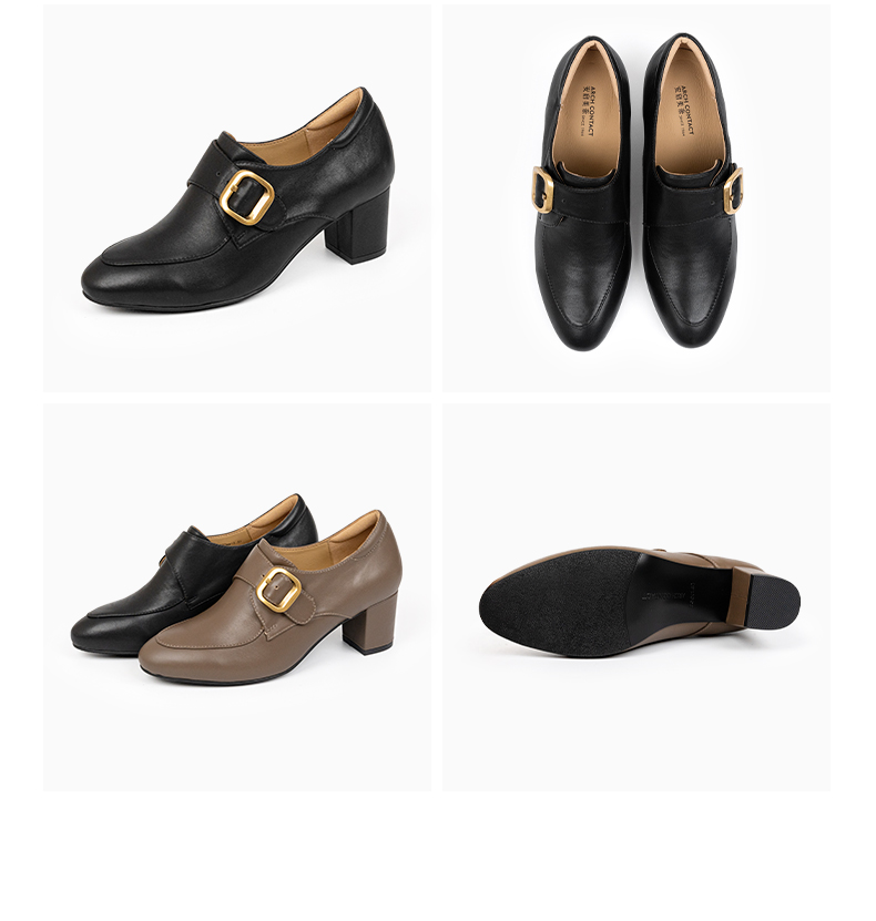 ARCHCONTACT安启美奈粗跟带扣英伦小皮鞋52842