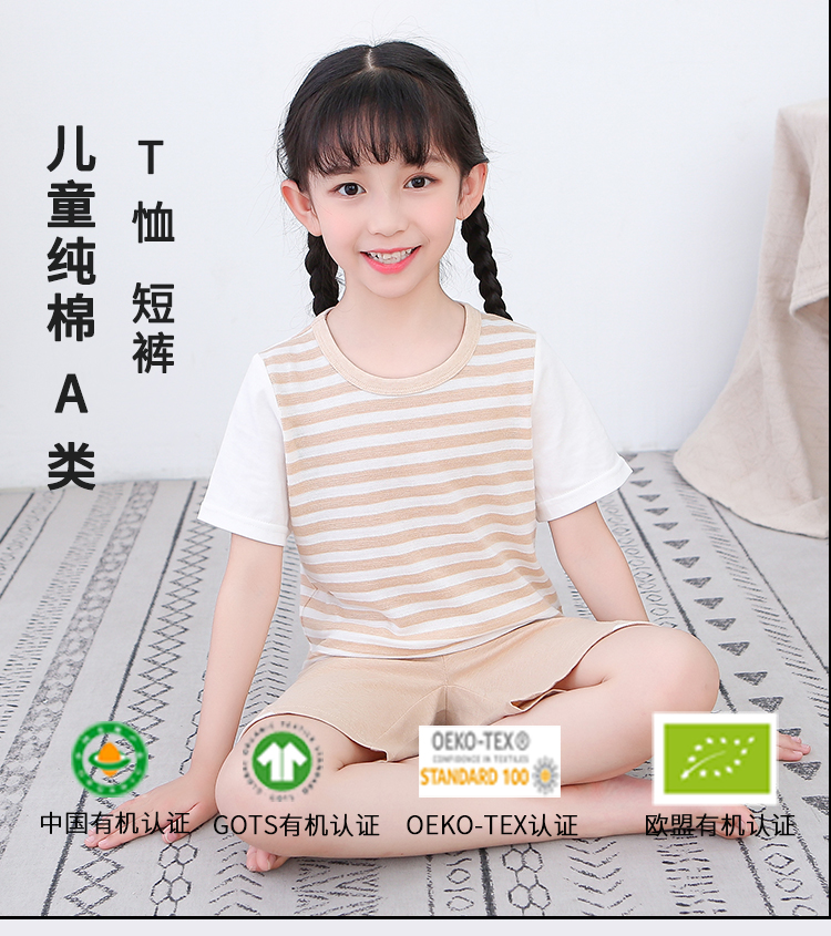 断码清仓 素道有机纯棉童装 男女圆领透气网眼T恤 夏季儿童短裤