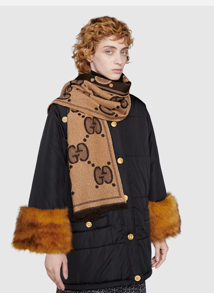 【二】GUCCI 古驰 女士 GG 羊毛提花围巾 混色 598993 3GC15 9764