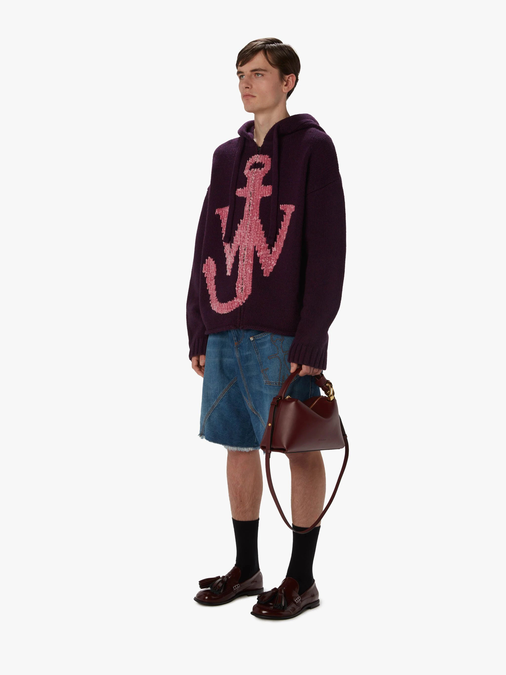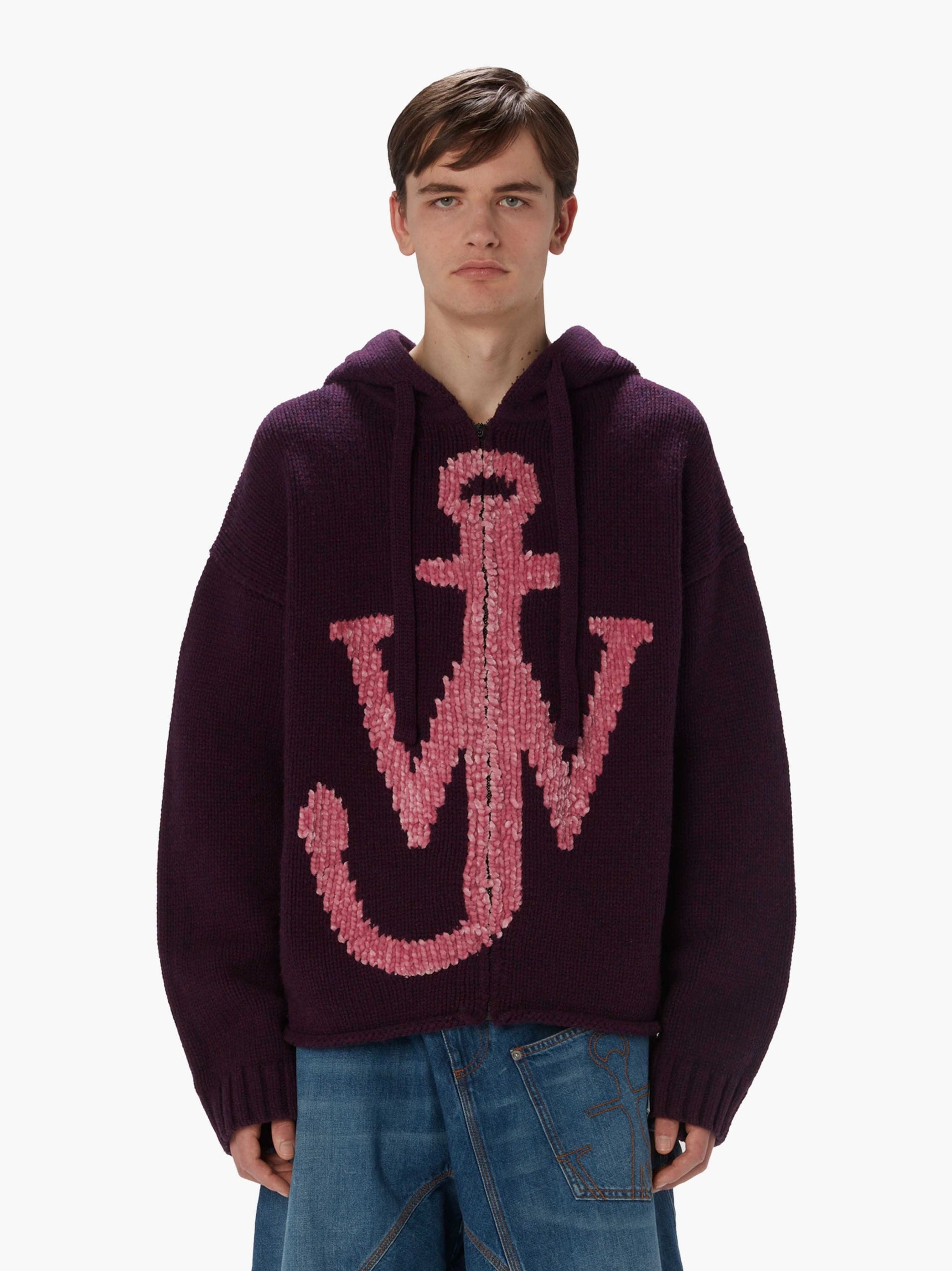 拉链船锚徽logo连帽针织衫