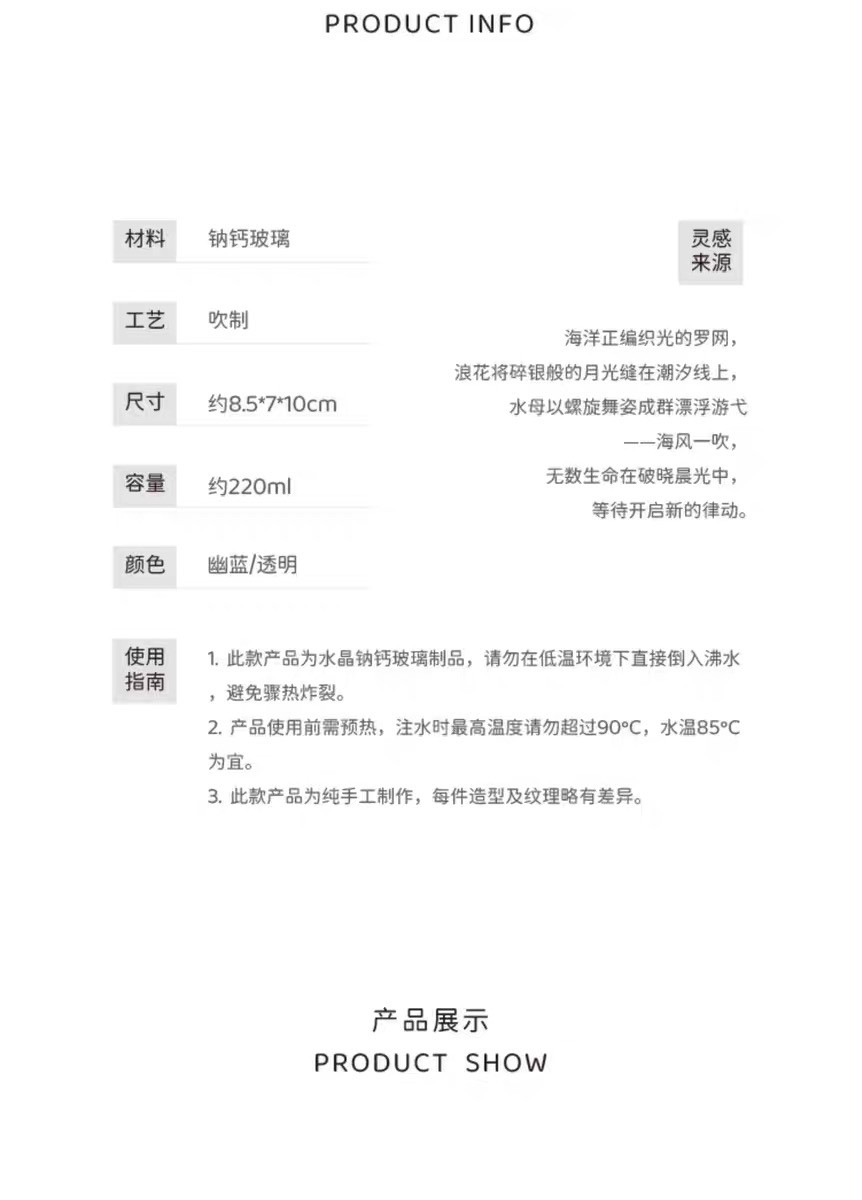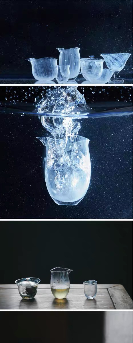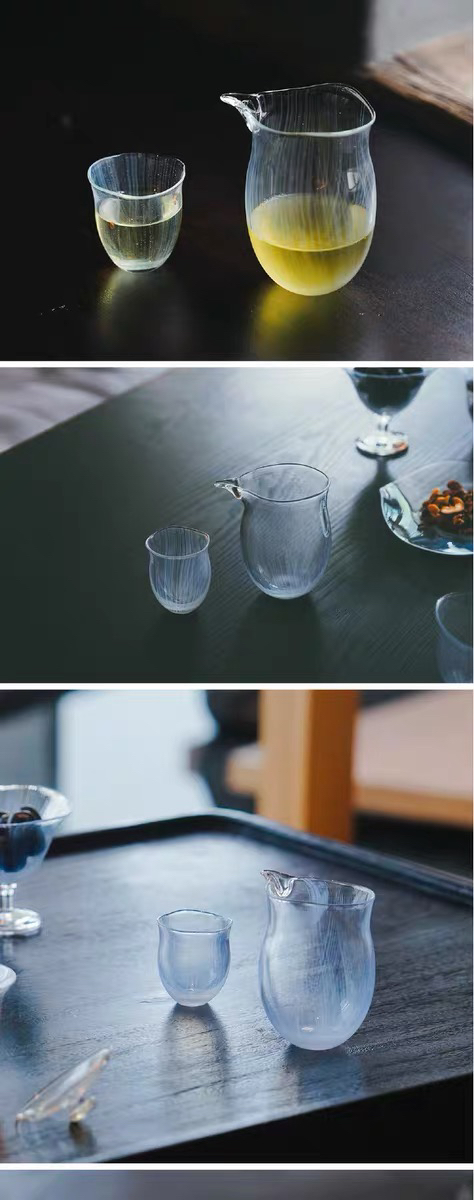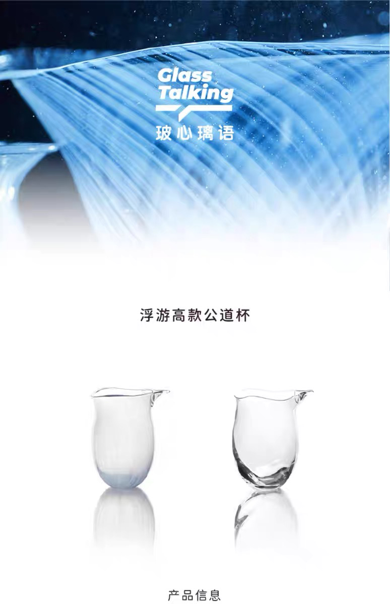 玻心璃语 | 浮游高款公道杯 钠钙玻璃 茶具 手工匠人 幽蓝 透明
