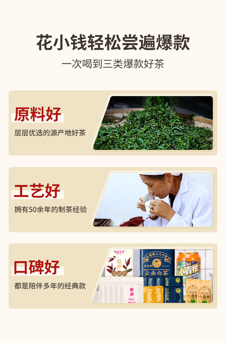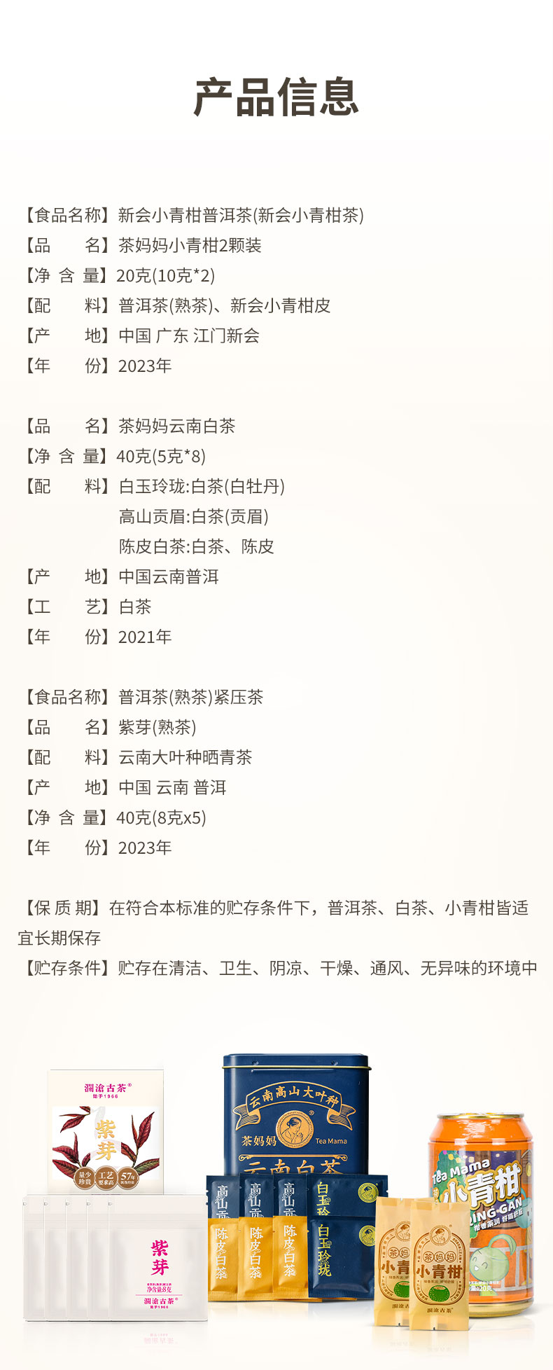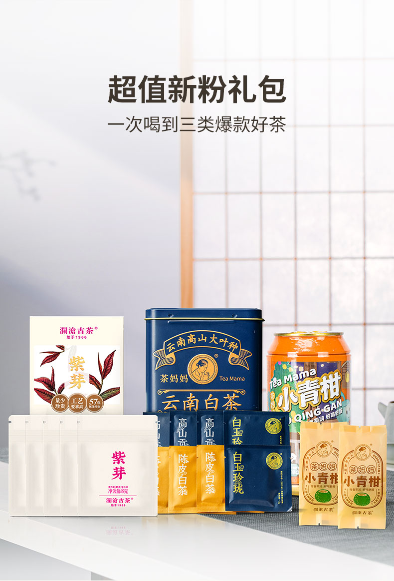 【超值新人礼包】澜沧古茶2023年茶妈妈小青柑普洱茶熟茶两颗装+白茶品鉴装(白玉玲珑5g*2袋+高山贡眉5g*3袋+陈皮白茶5g*3袋)盒装40g+2023年紫芽熟茶小萌饼40g(8g*5))