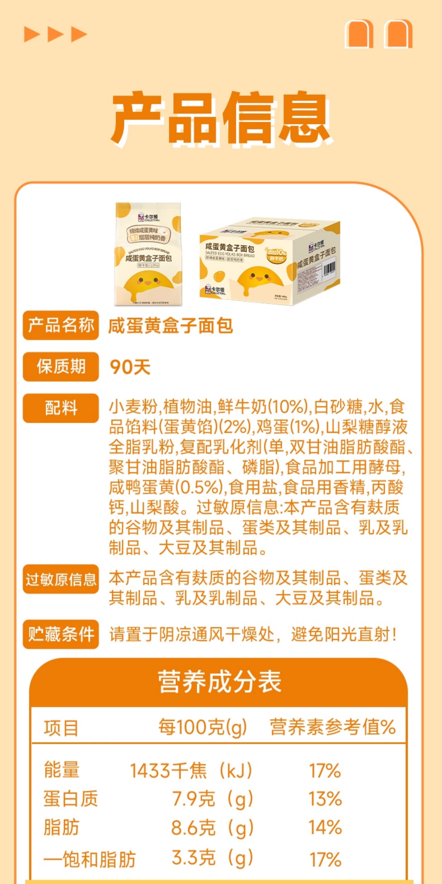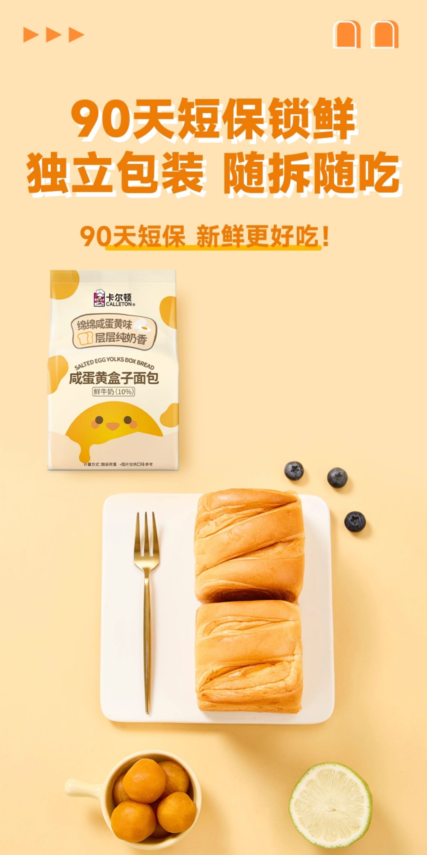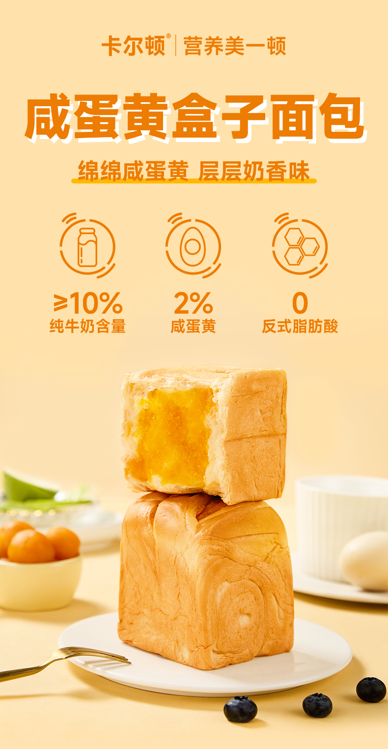 【分仓直发包邮】卡尔顿咸蛋黄盒子面包480g