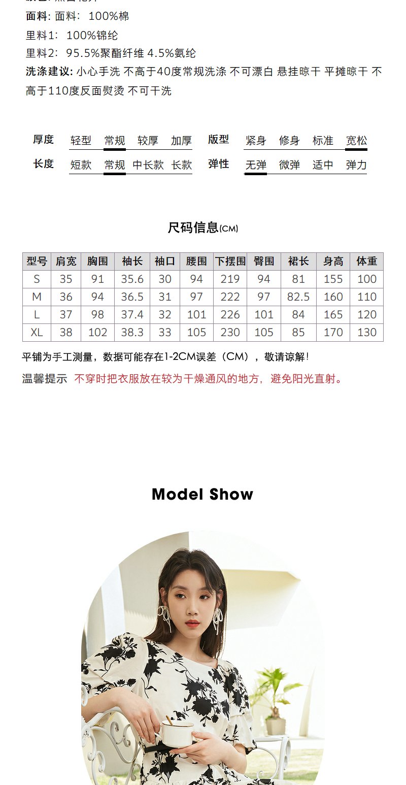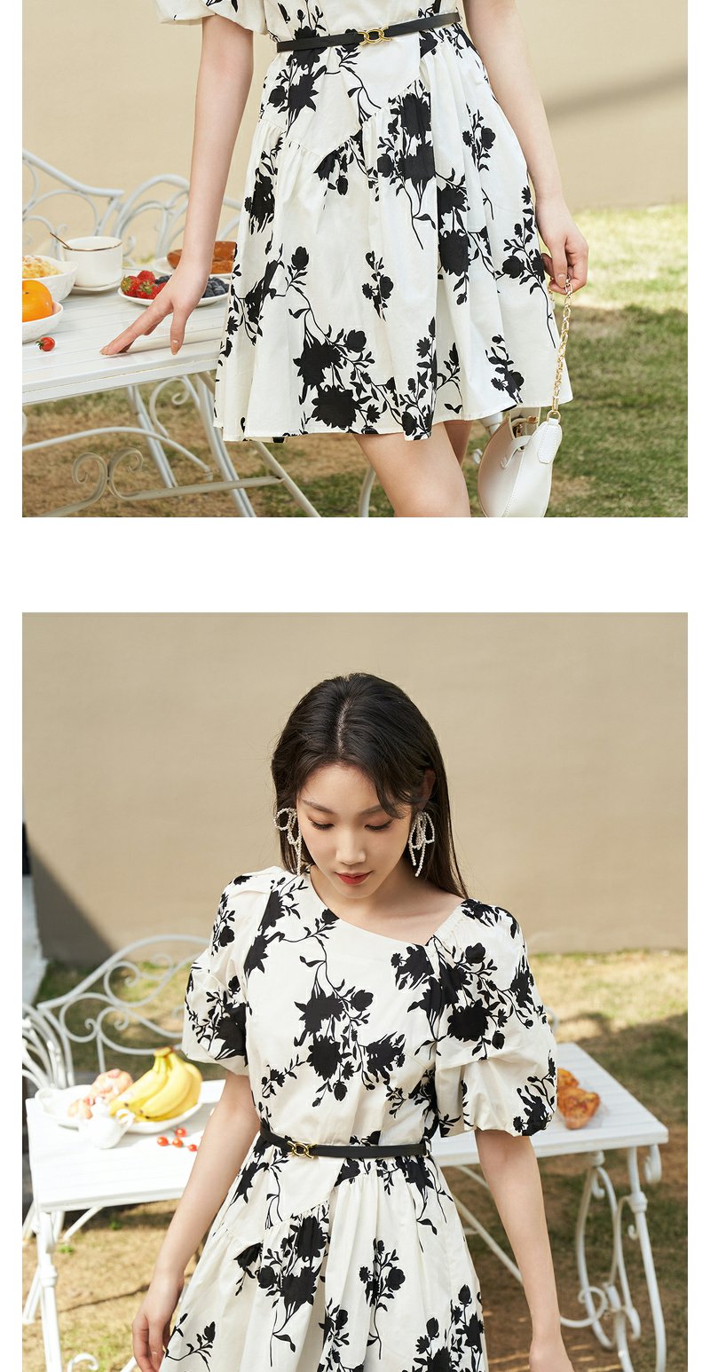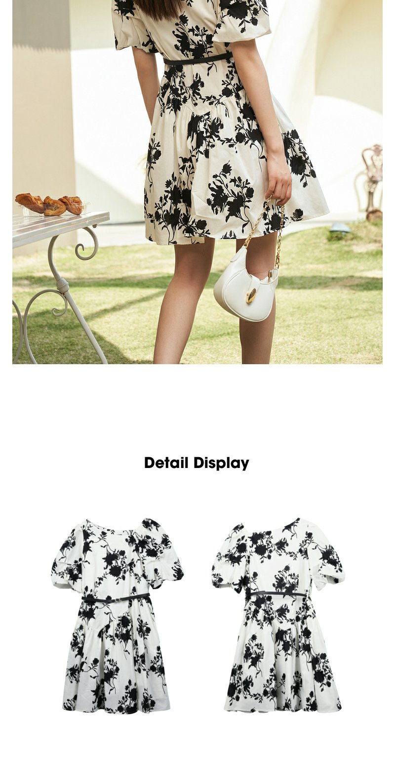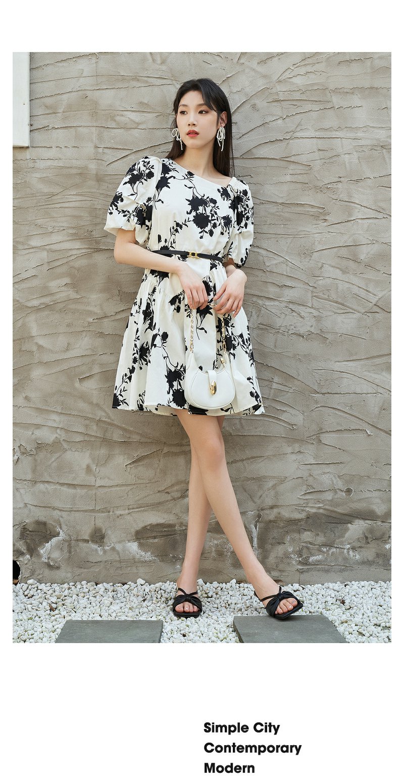 NEELLY纳俪商场同款气质印花连衣裙女不对称领口灯笼袖A字裙中长N23044Y03303