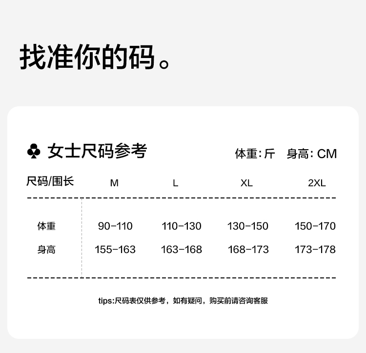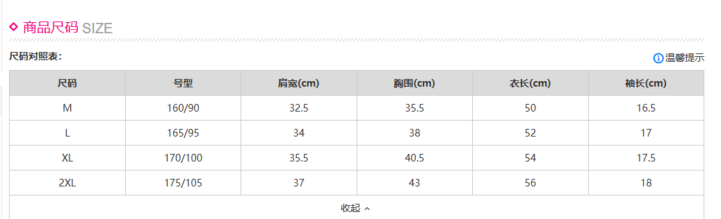 修身短款打底衫尺码表:
