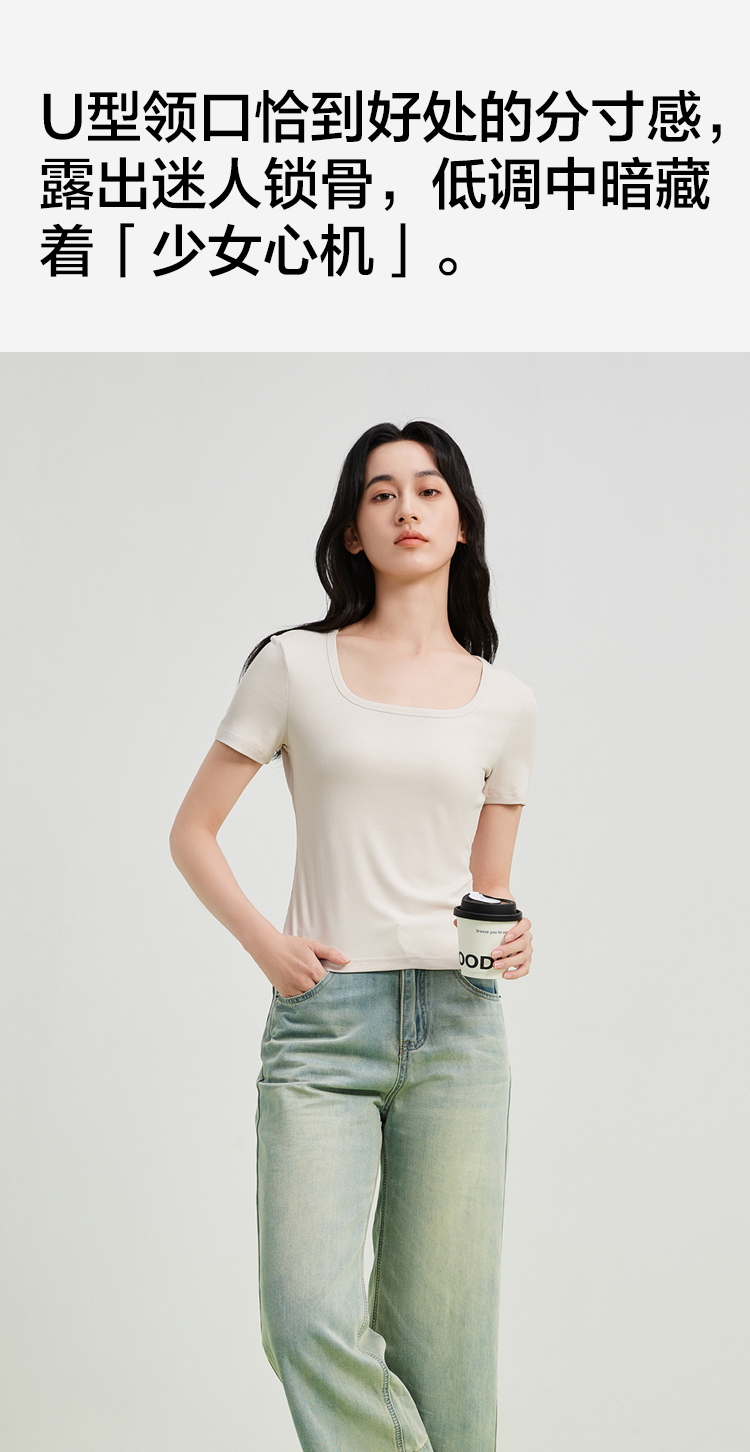 【凉感】【M-2XL】【有棵树】女士夏款凉感短袖T恤修身短款 商品图7