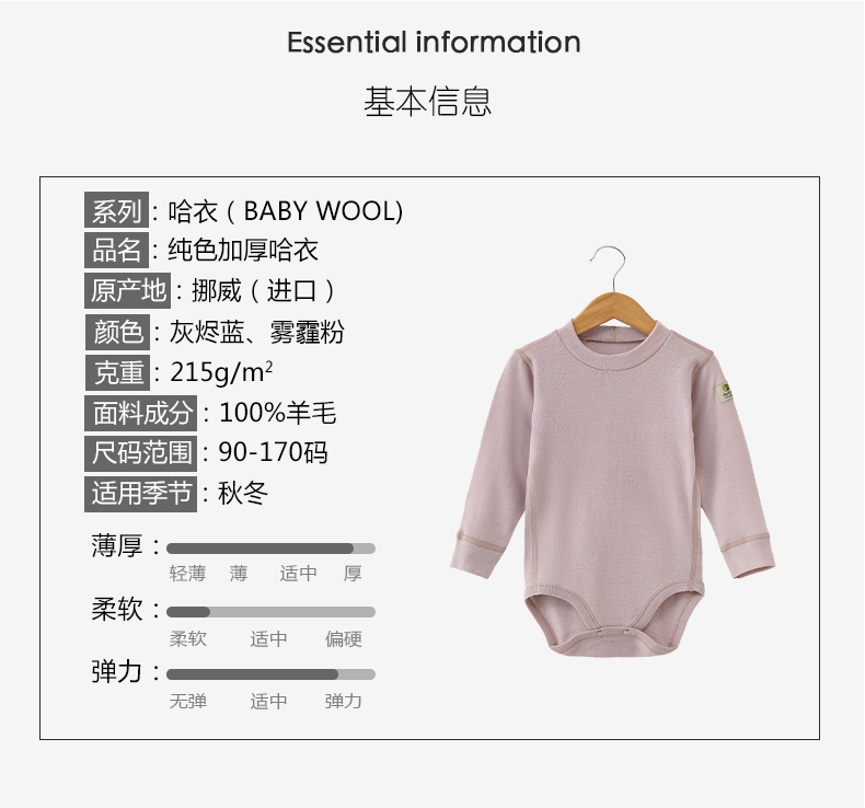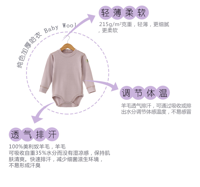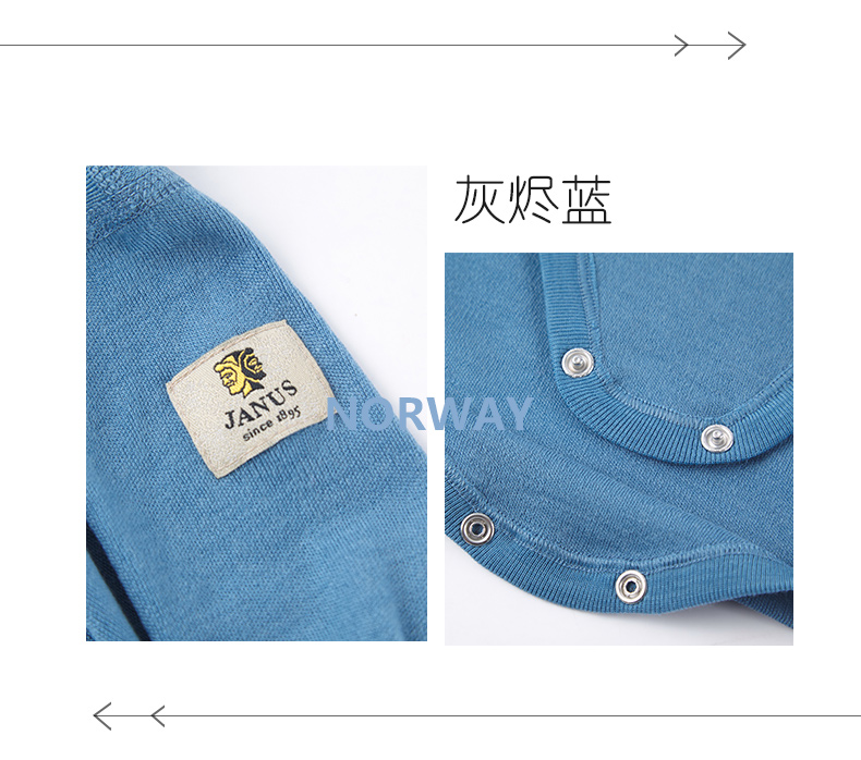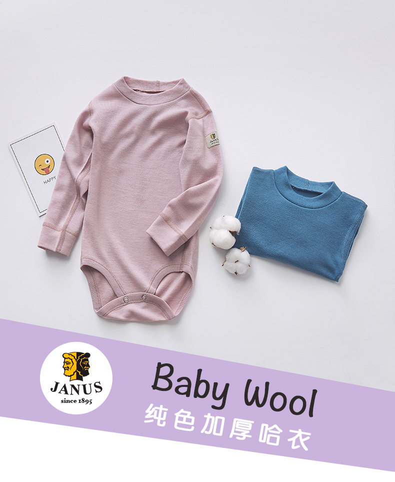 JANUS挪威美利奴儿童羊毛婴儿长袖三角哈衣爬衣包屁衣舒适透气