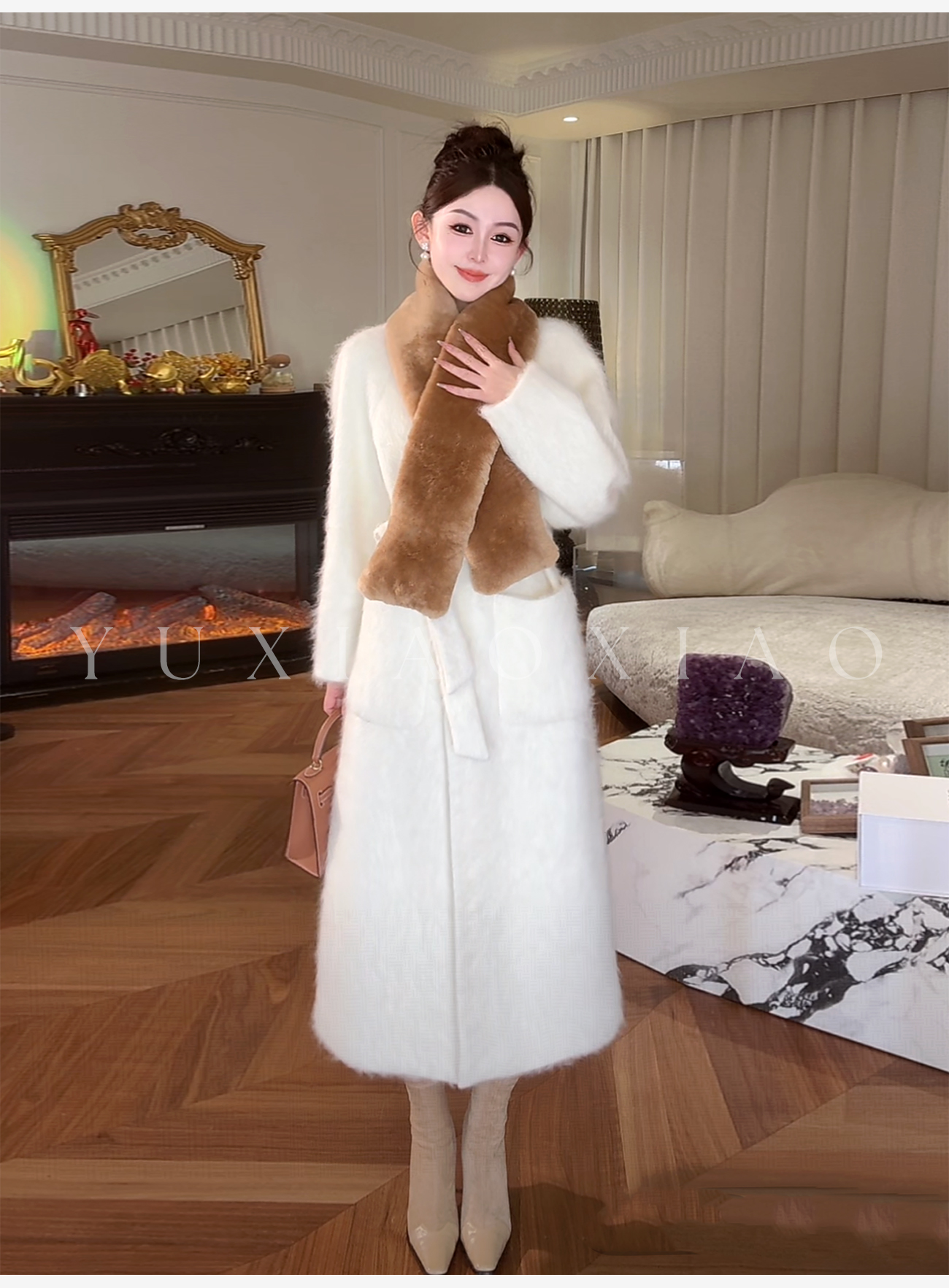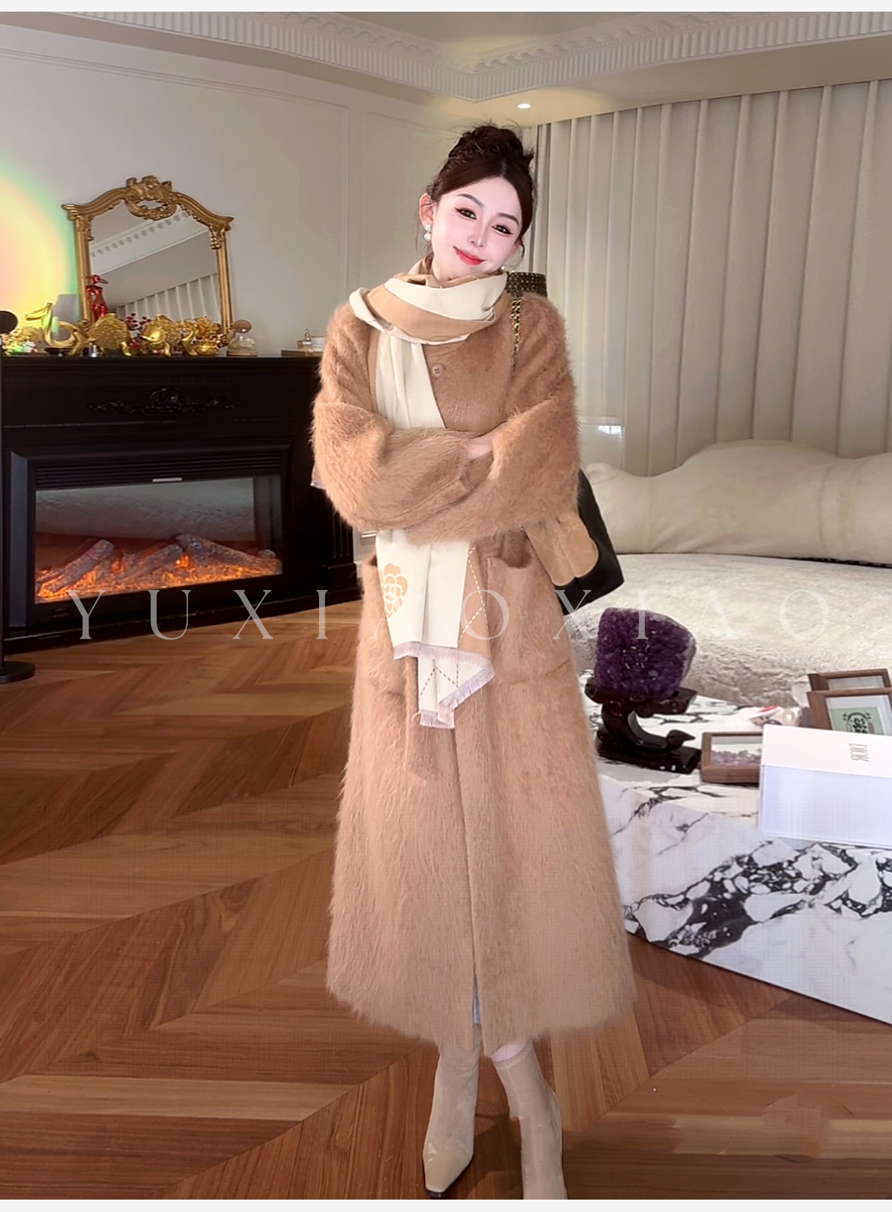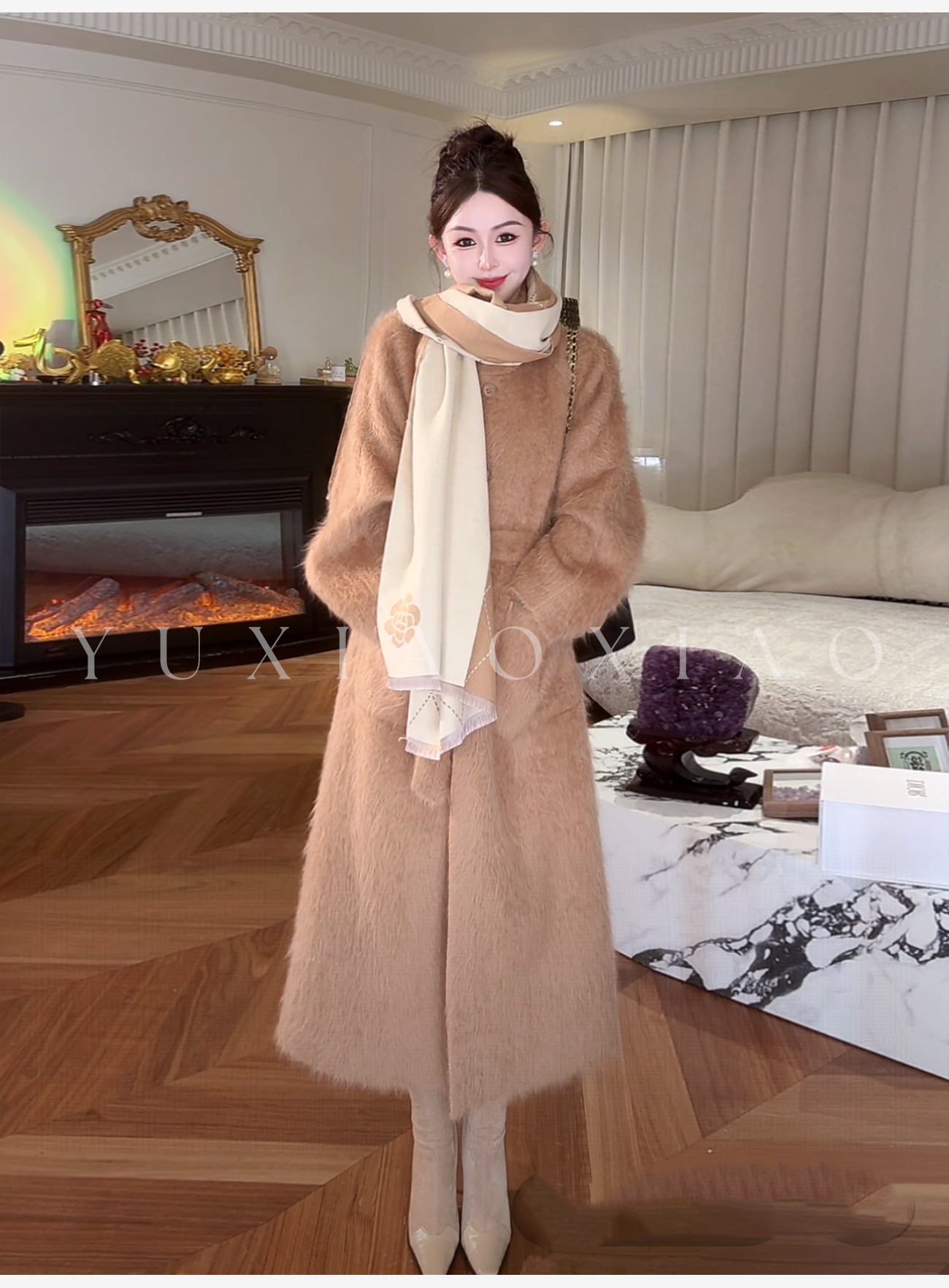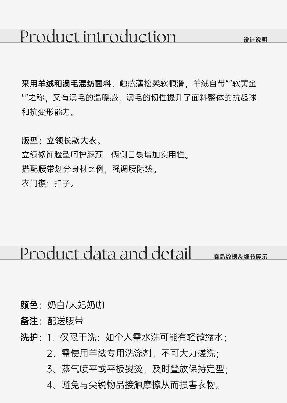 余潇潇【奶糖梦境】澳毛羊绒混纺柔软舒适气质立领长款大衣秋冬新款