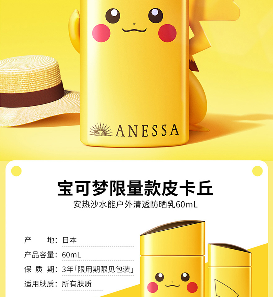 【一般贸易】日本安热沙安耐晒防晒霜 2021安耐晒宝可梦联名限定款皮卡丘杰尼龟60ml 现货