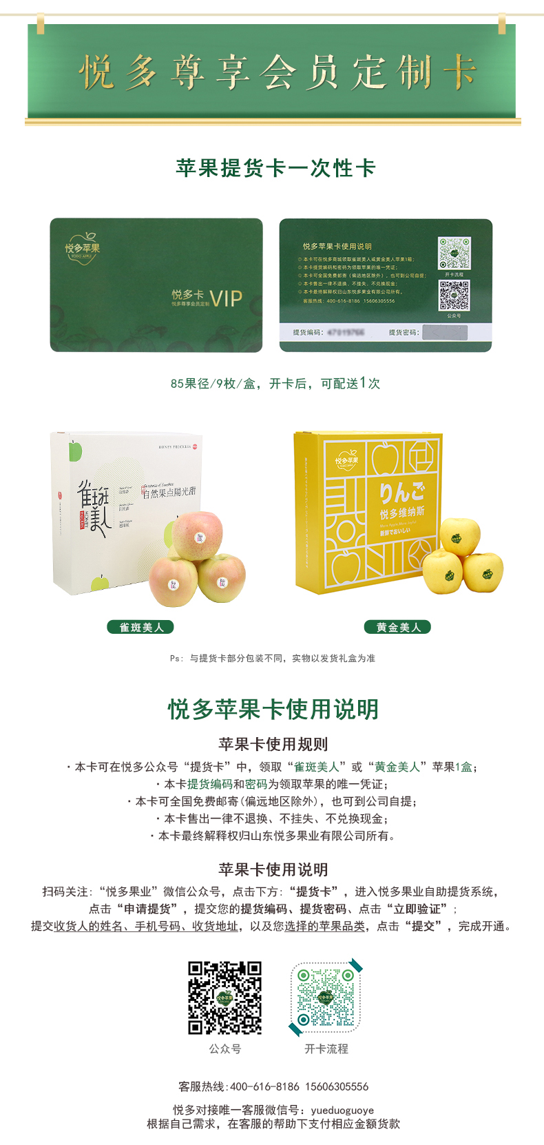 苹果提货卡 绿色一次性卡(1盒)雀斑美人/维纳斯黄金美人 二选一