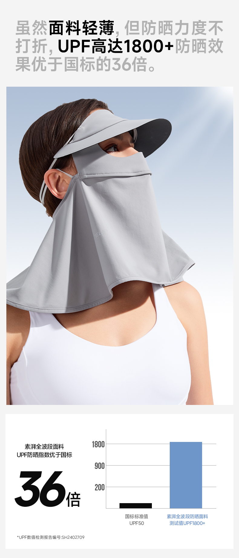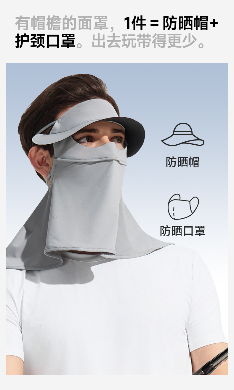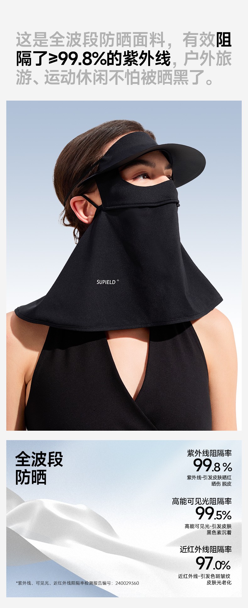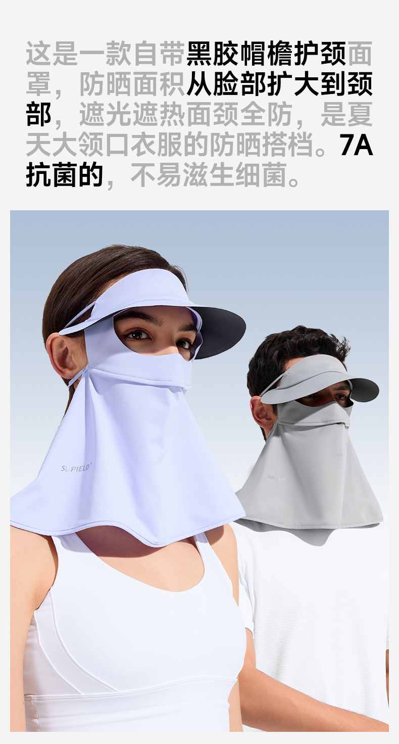 【困妈】素湃Supield面颈一体帽檐防晒面罩女全脸防紫外线脸基尼遮阳口罩F3409