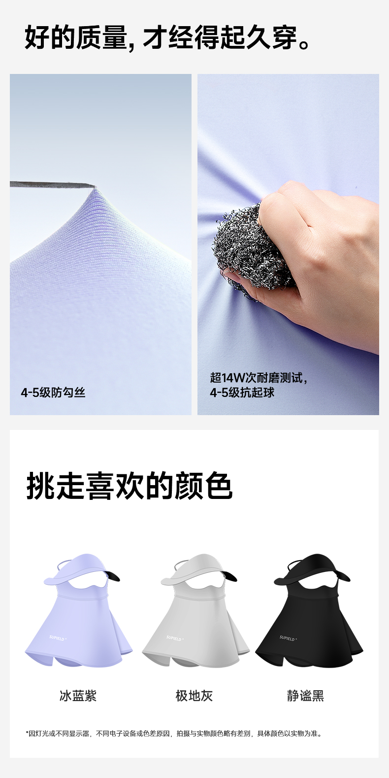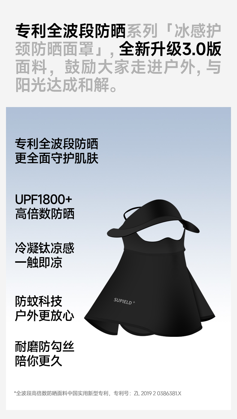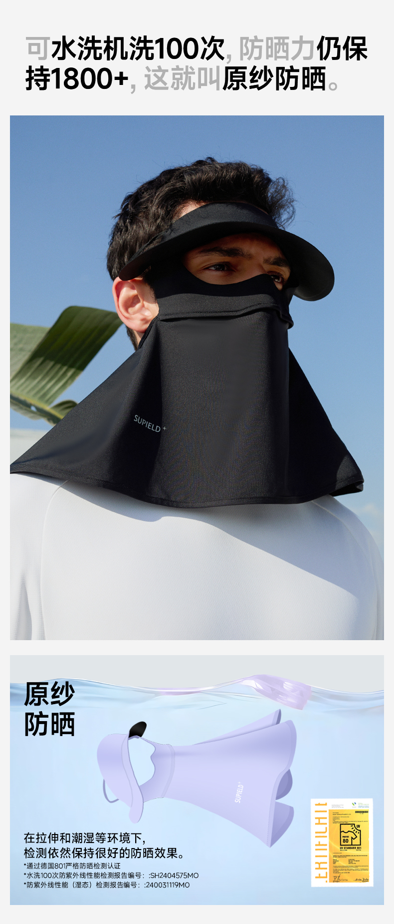 【困妈】素湃Supield面颈一体帽檐防晒面罩女全脸防紫外线脸基尼遮阳口罩F3409