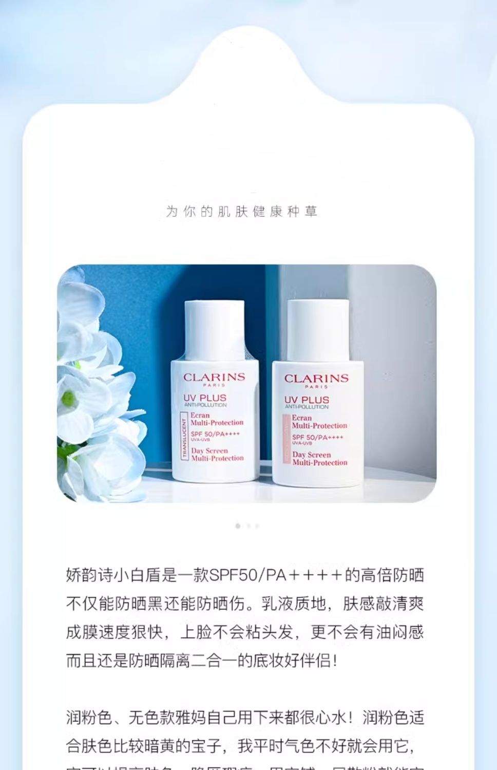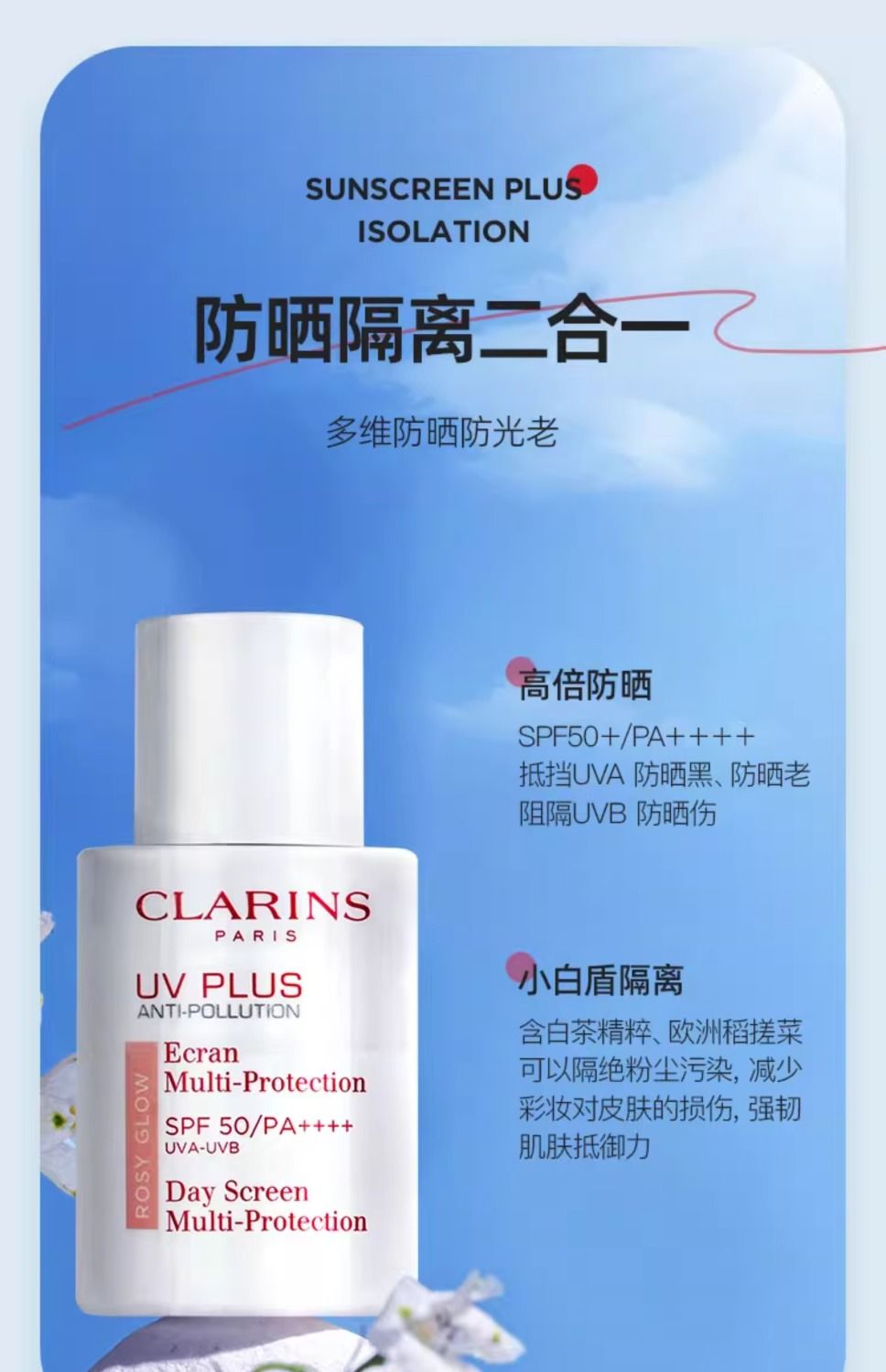 【品牌授权】【爆款】Clarins/娇韵诗防晒霜轻透隔离乳高倍UV小白盾防光老润粉色50ML