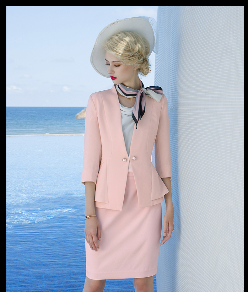 IWY/时尚职业装女装套装名媛气质粉色西装套裙正装西服OL工作服装CS03