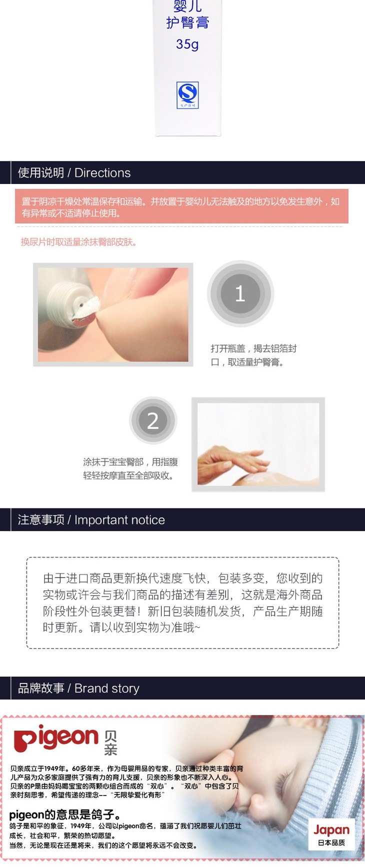 【一般贸易】Pigeon贝亲婴儿护臀膏35g IA149