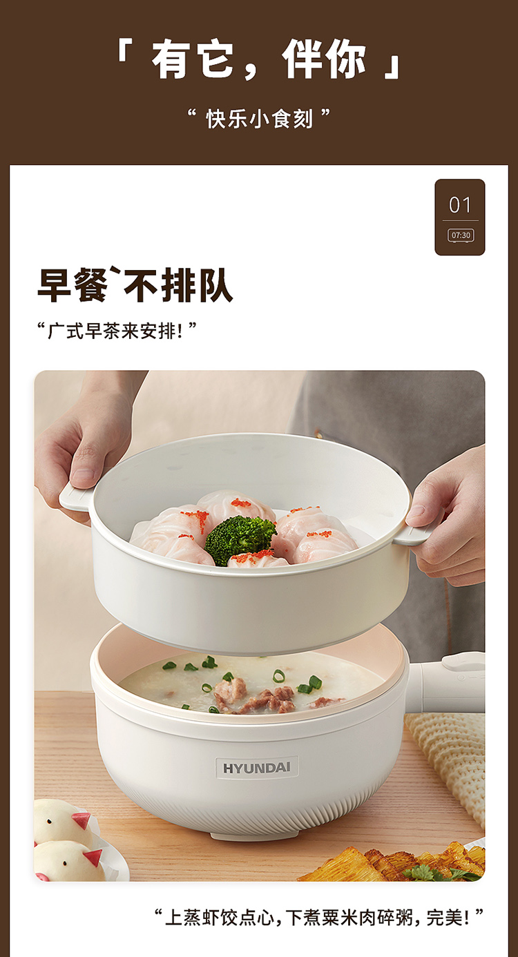 【团品】韩国HYUNDAI长手柄多功能电煮锅