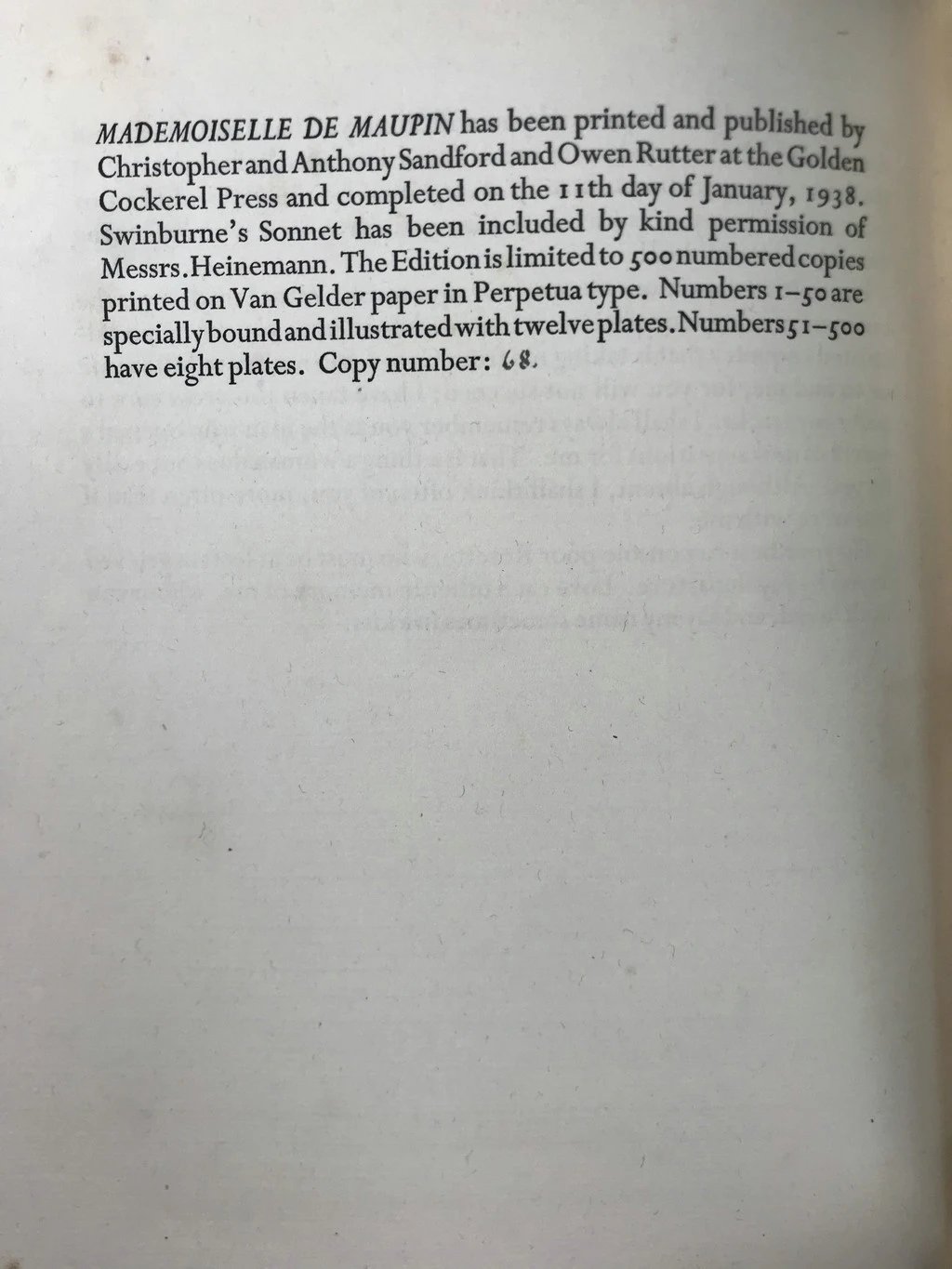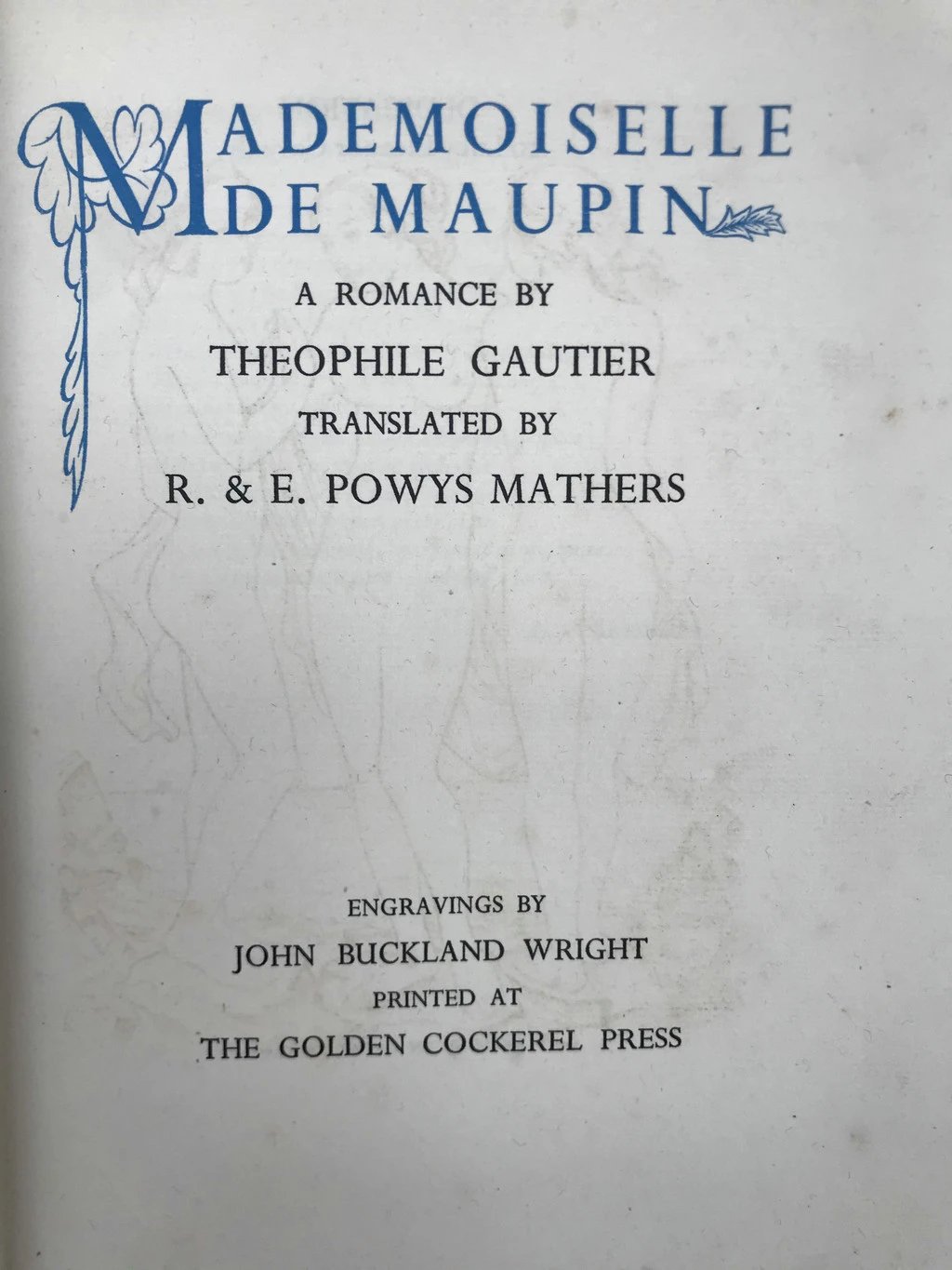 金鸡出版社限量500册!1938年 戈蒂埃《莫班小姐》 约翰·巴克兰·莱特8幅版画插图 皮脊精装16开