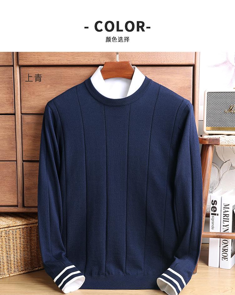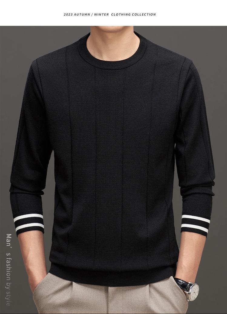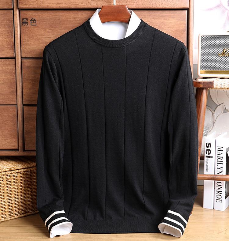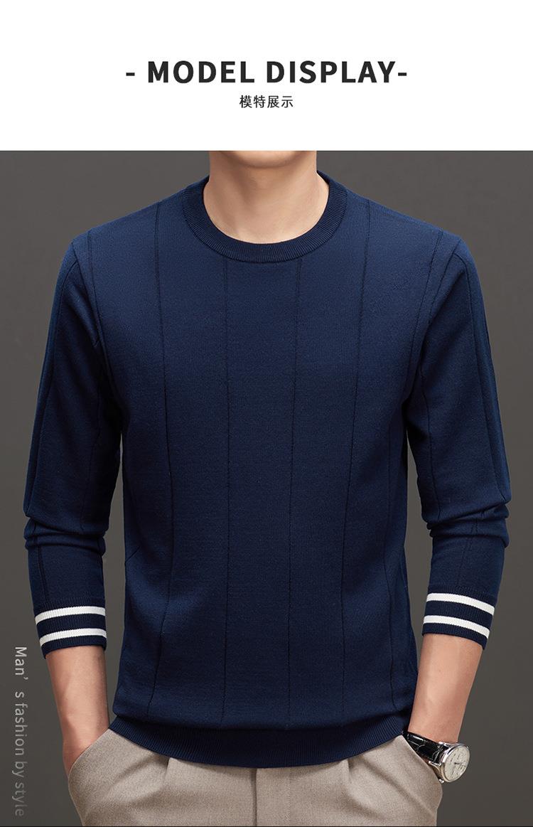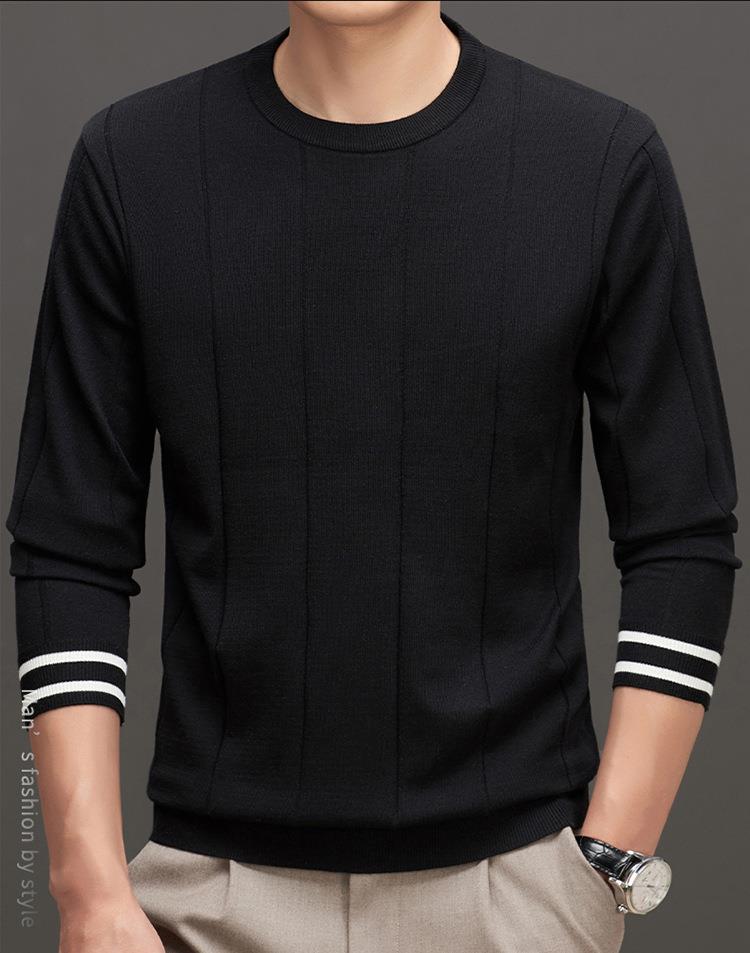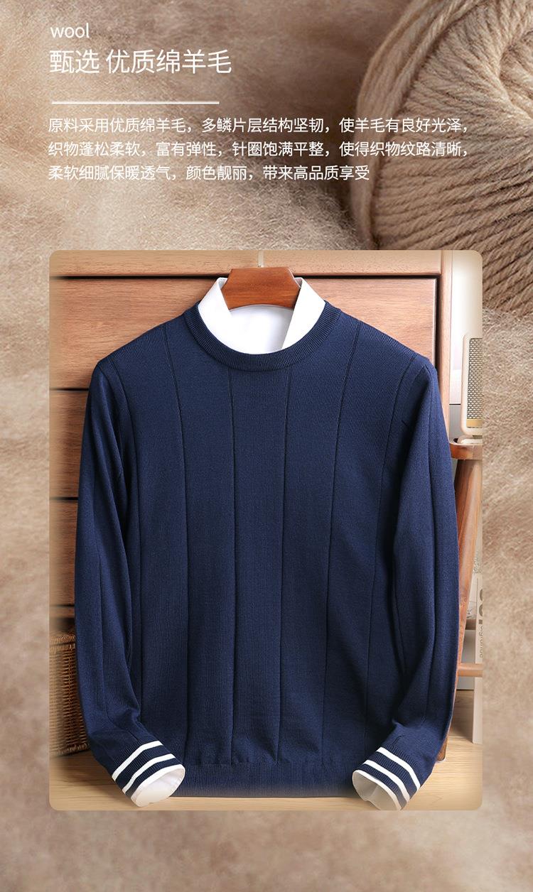 羊毛混纺秋冬季针织衫男式中年新款简约休闲圆领毛衣百搭潮流打底衫男