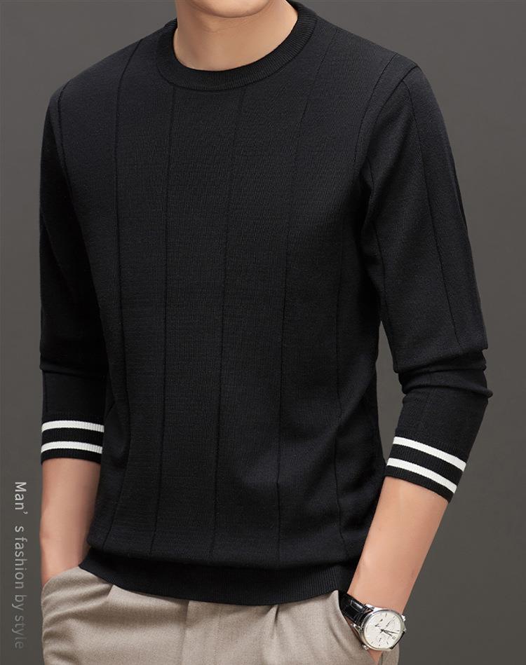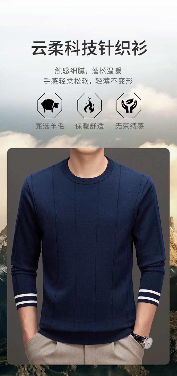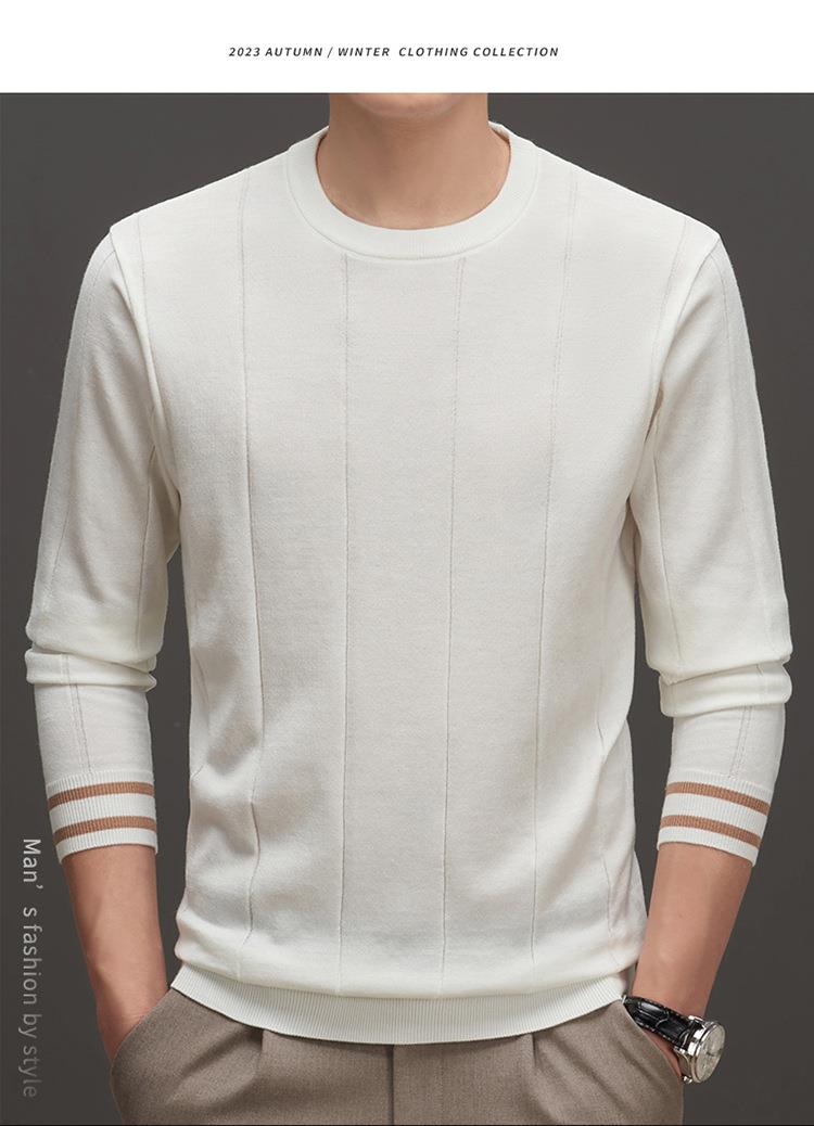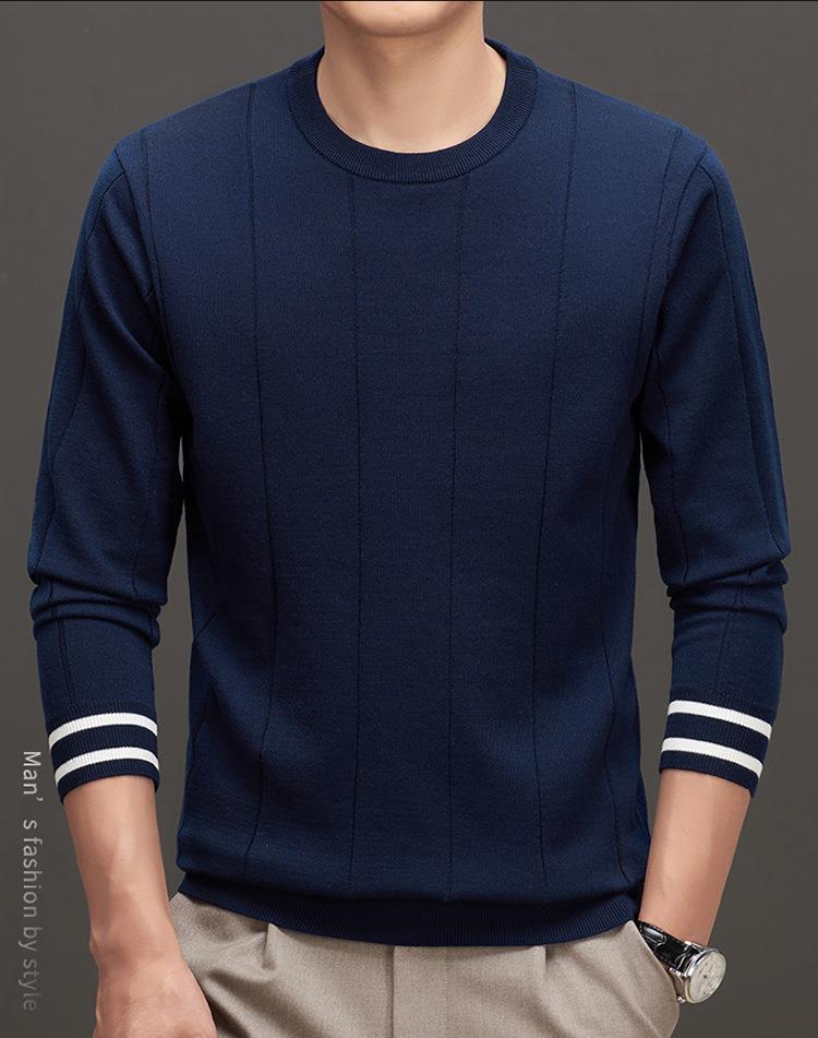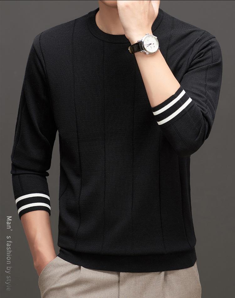 羊毛混纺秋冬季针织衫男式中年新款简约休闲圆领毛衣百搭潮流打底衫男