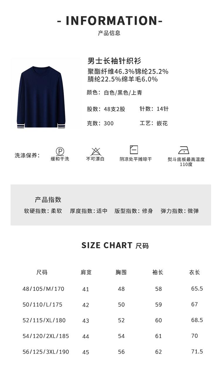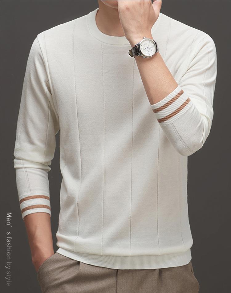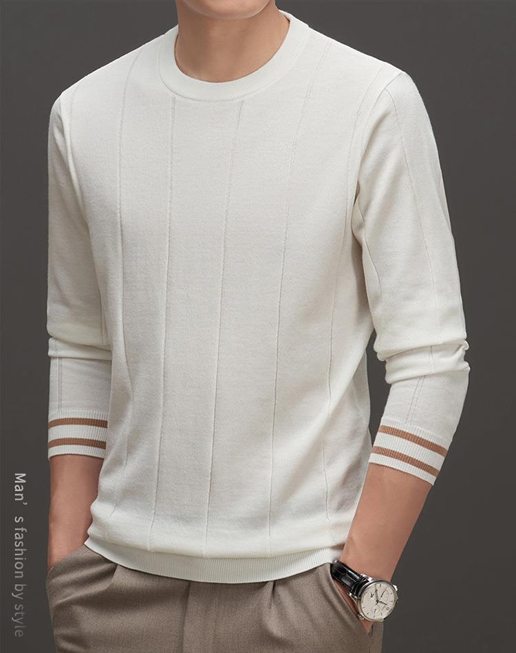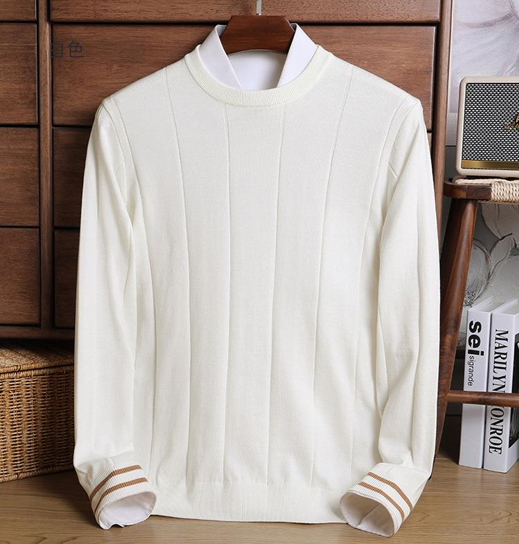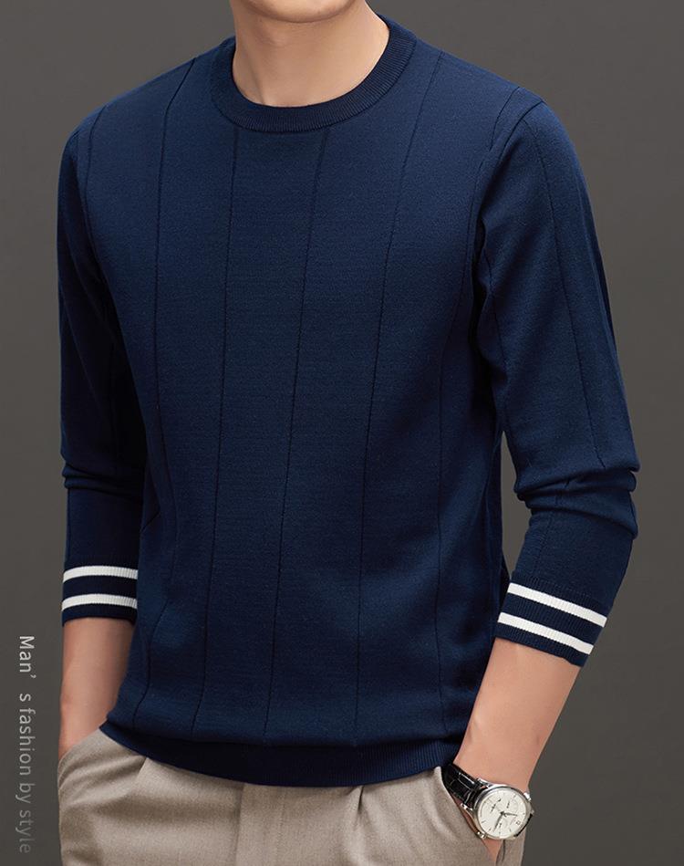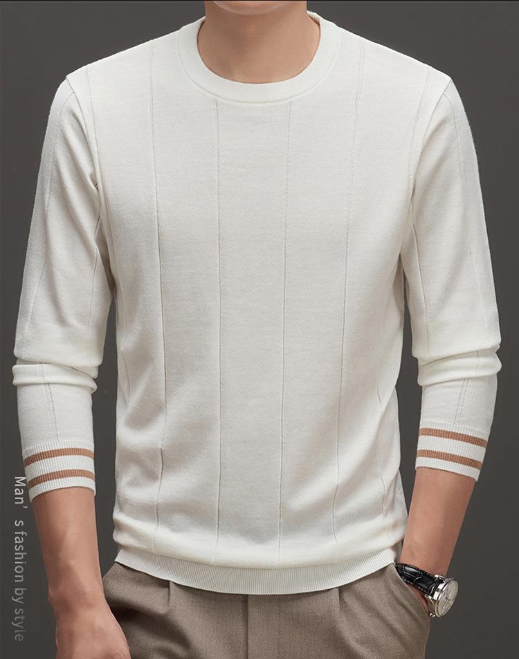 羊毛混纺秋冬季针织衫男式中年新款简约休闲圆领毛衣百搭潮流打底衫男